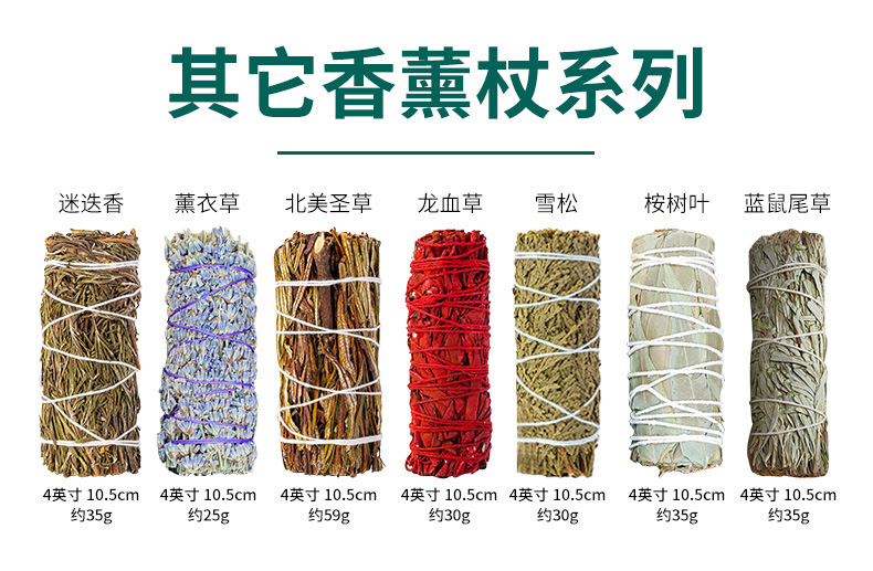 Set White Sage yang dikemas bersama dengan stik dupa untuk membersihkan ruangan, Dragon's Blood Grass, stik Cedar, Kayu Suci, White Sage yang dapat menghilangkan magnetisasi
