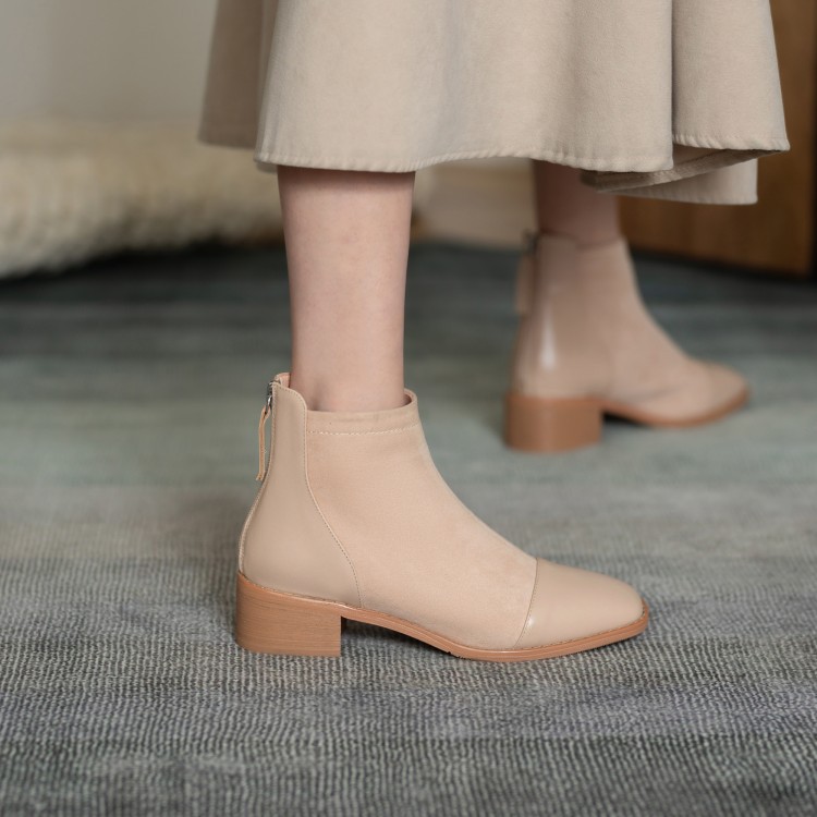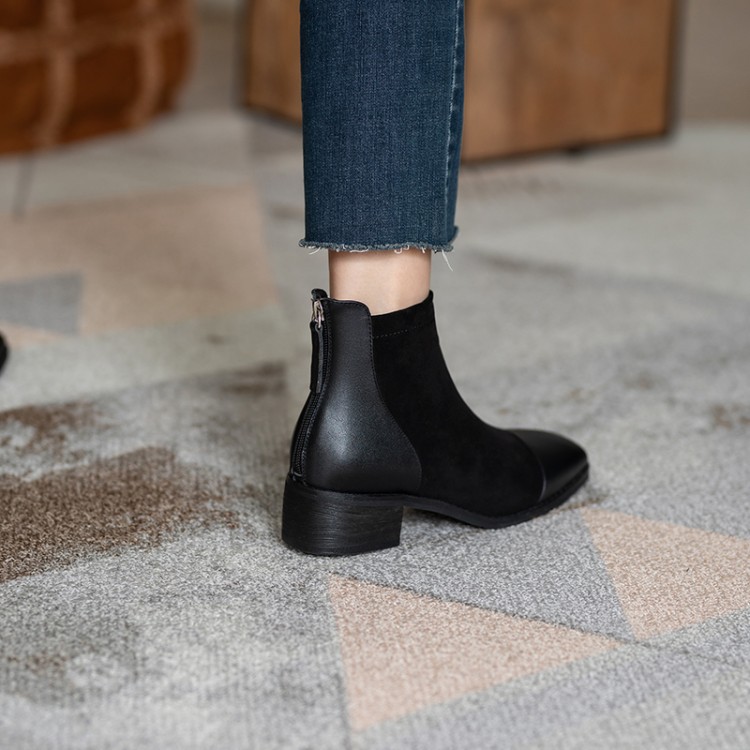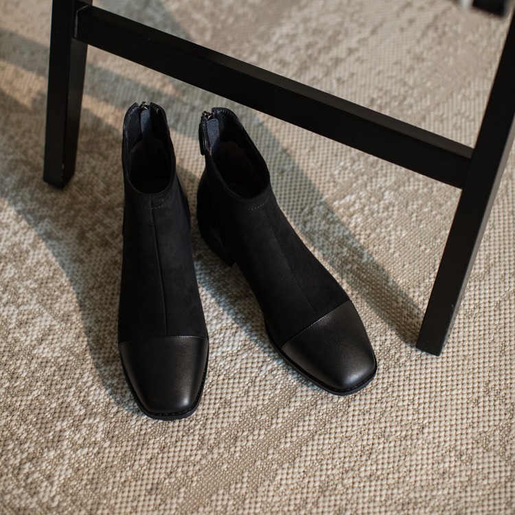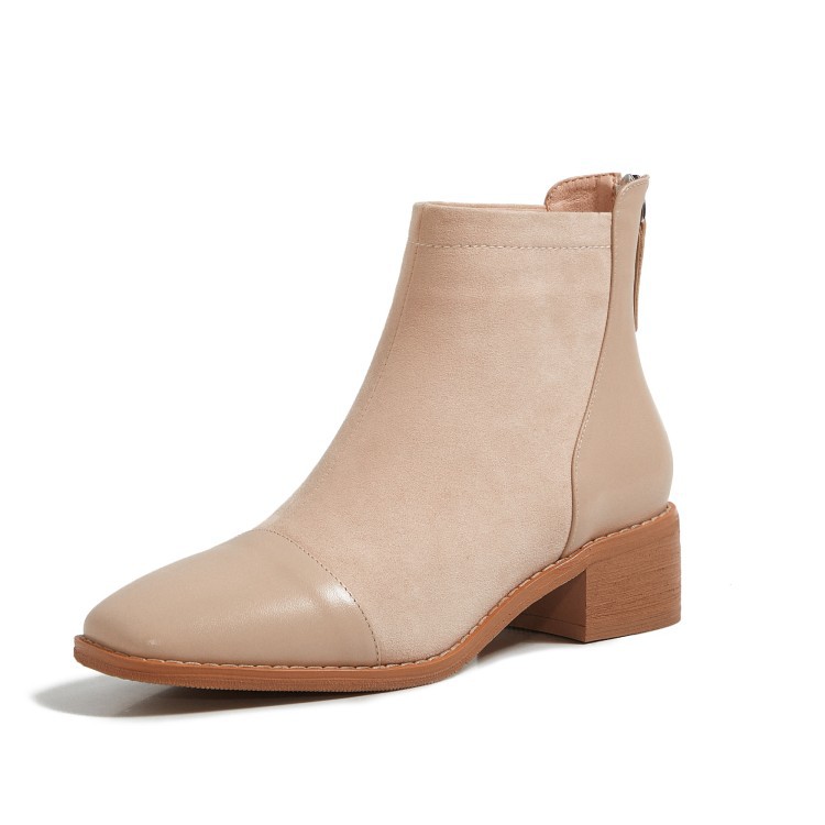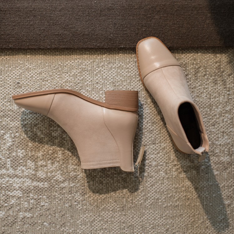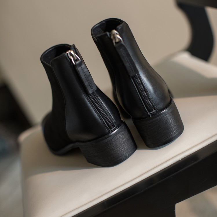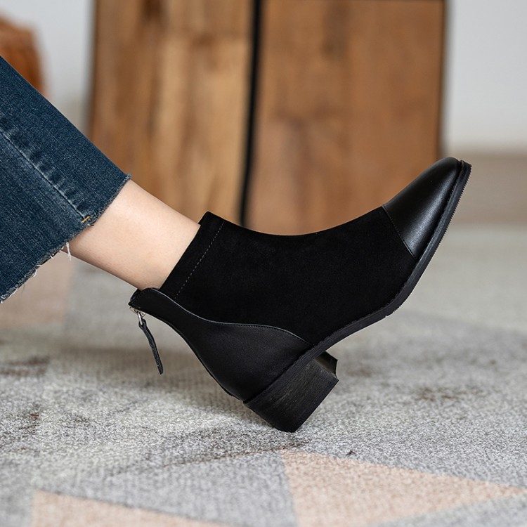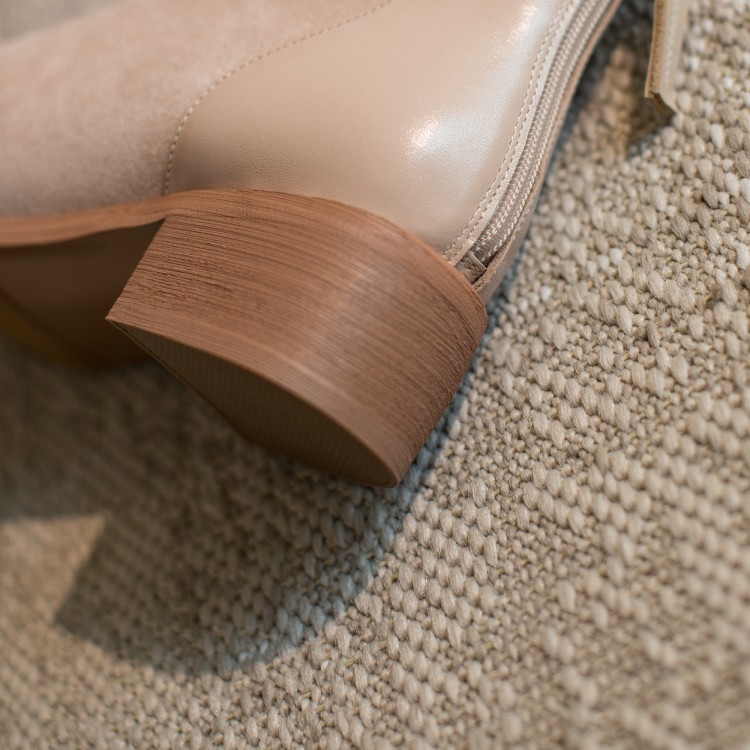 鞋面:牛皮+绒面内里:超纤、绒里鞋底:牛筋底尺码:33-41跟高:4.5厘米颜色:黑色、 杏色掌宽:9厘米36码筒高:12厘米