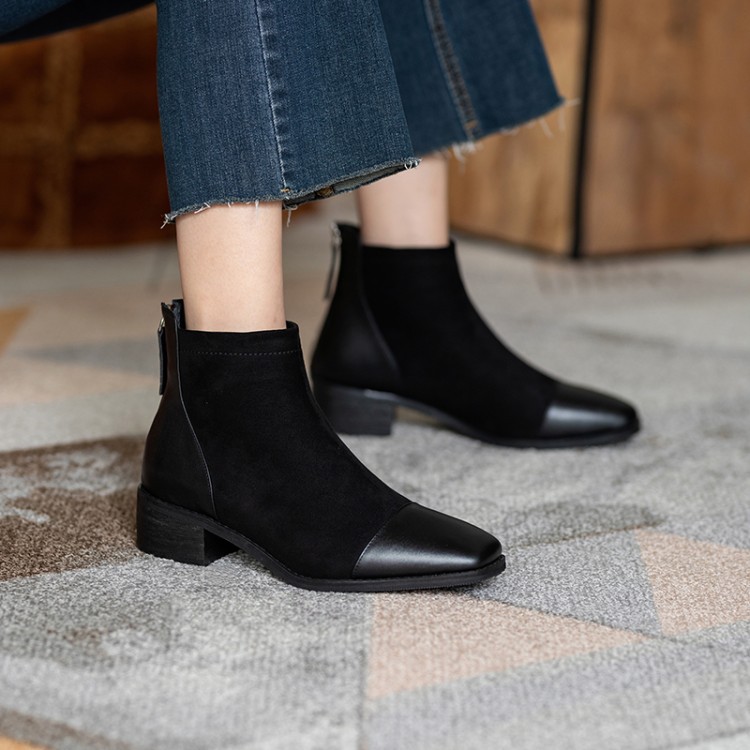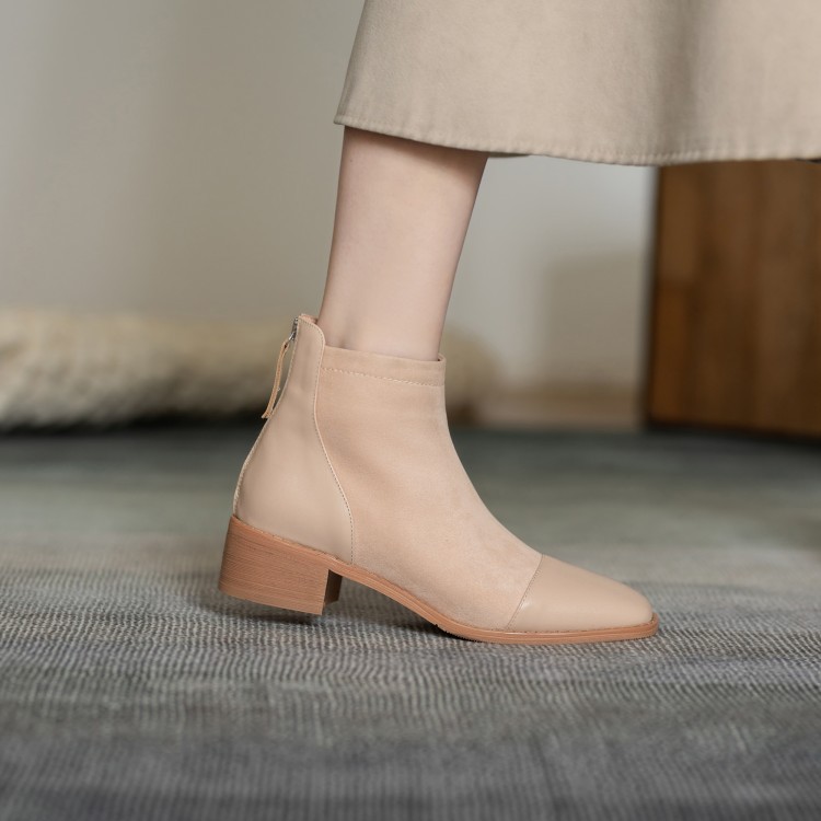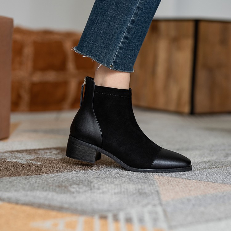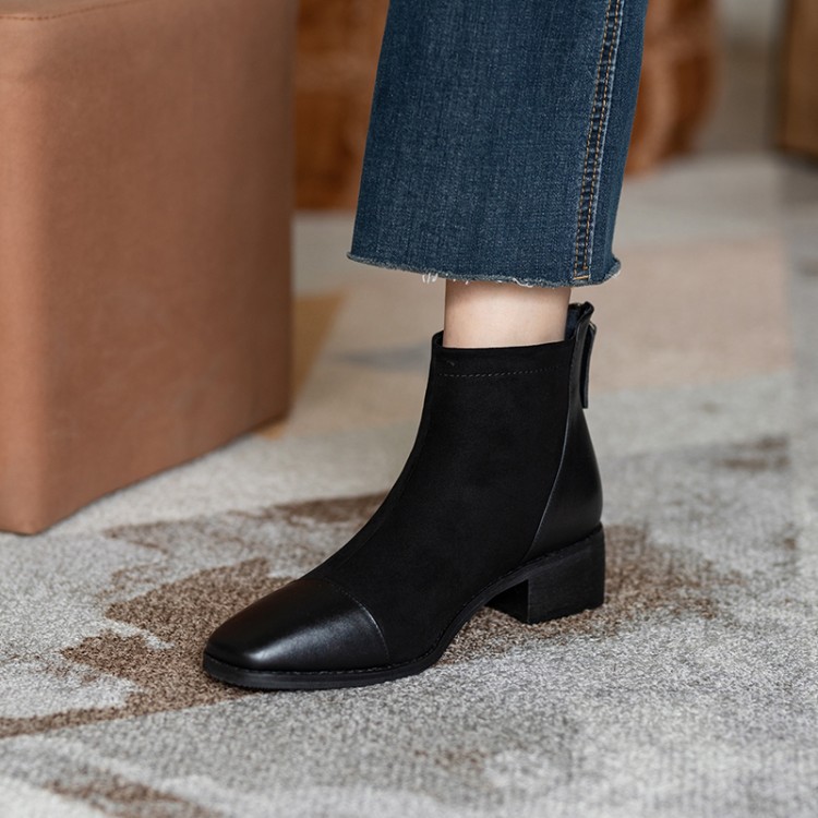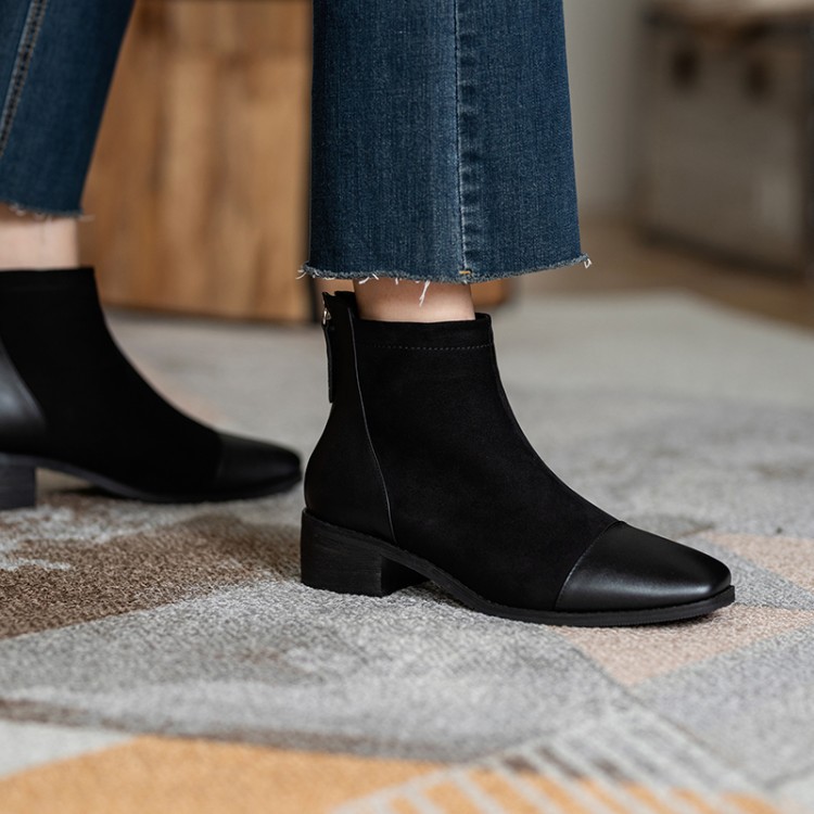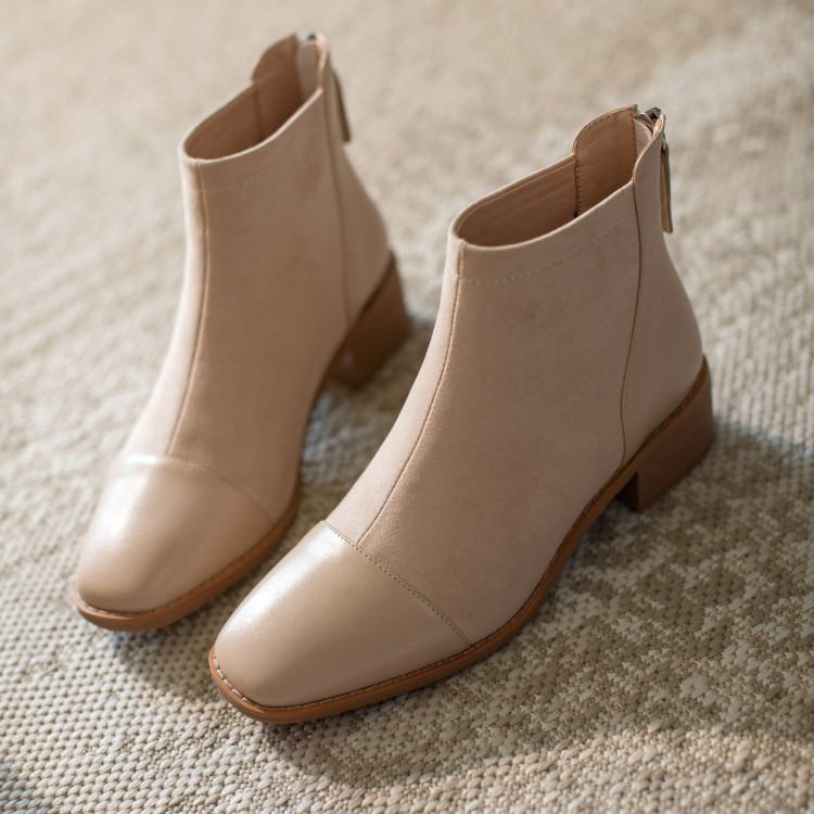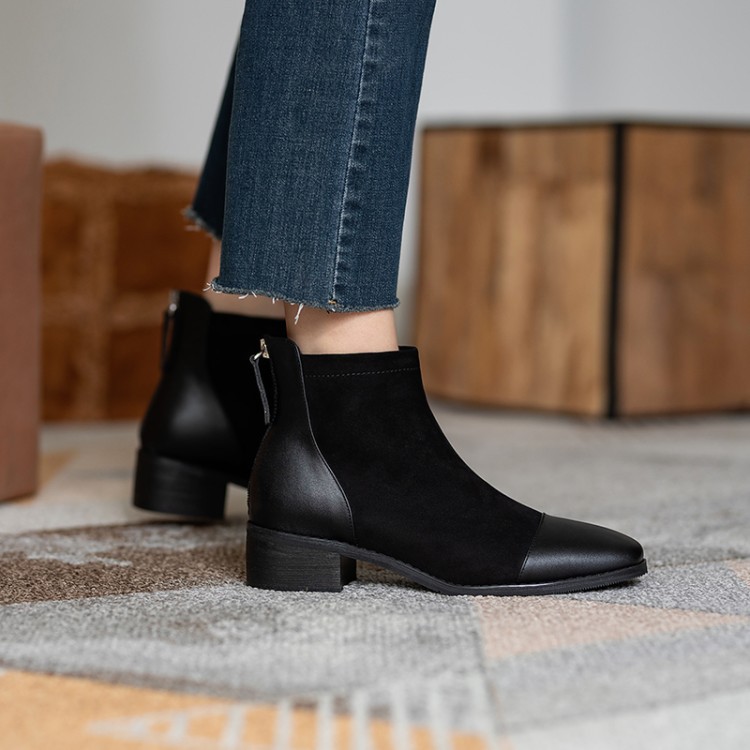 鞋面:牛皮+绒面内里:超纤、绒里鞋底:牛筋底尺码:33-41跟高:4.5厘米颜色:黑色、 杏色掌宽:9厘米36码筒高:12厘米