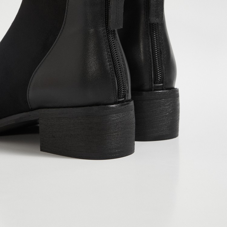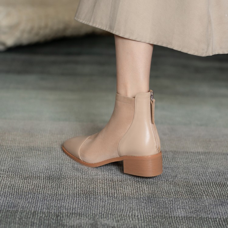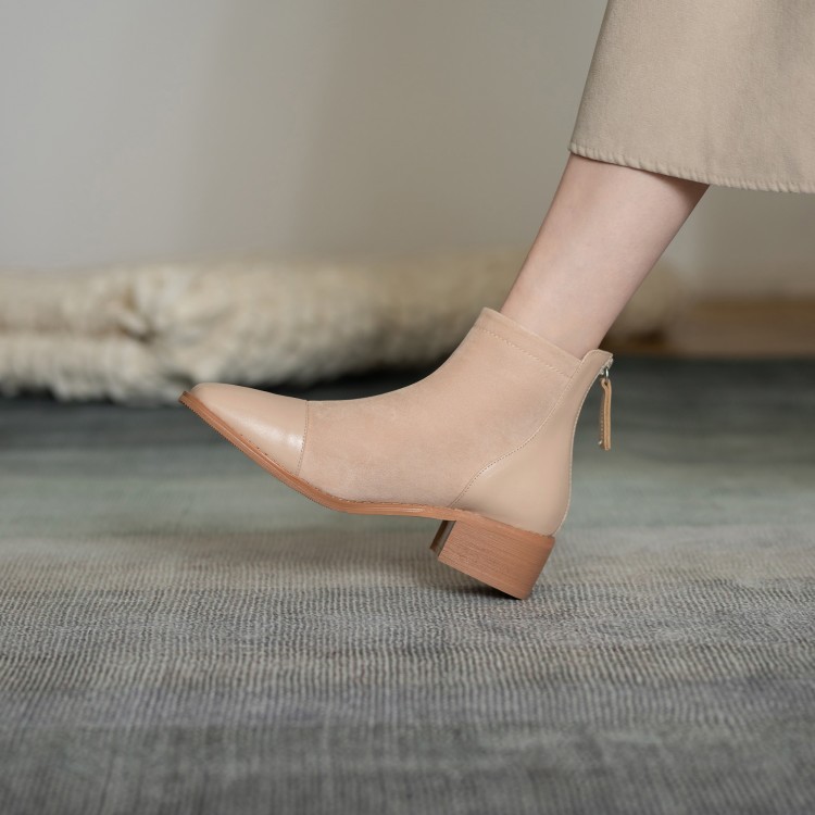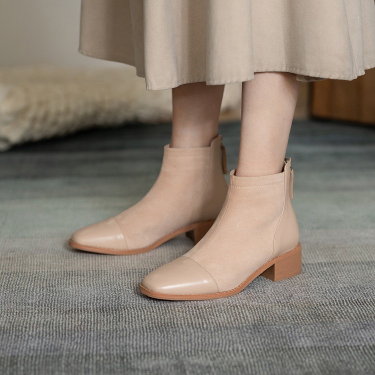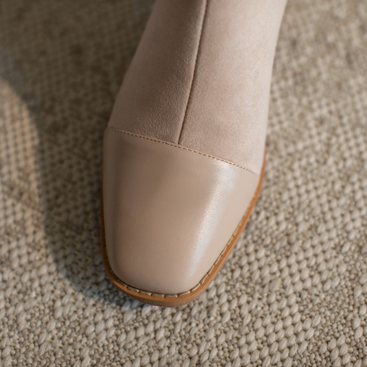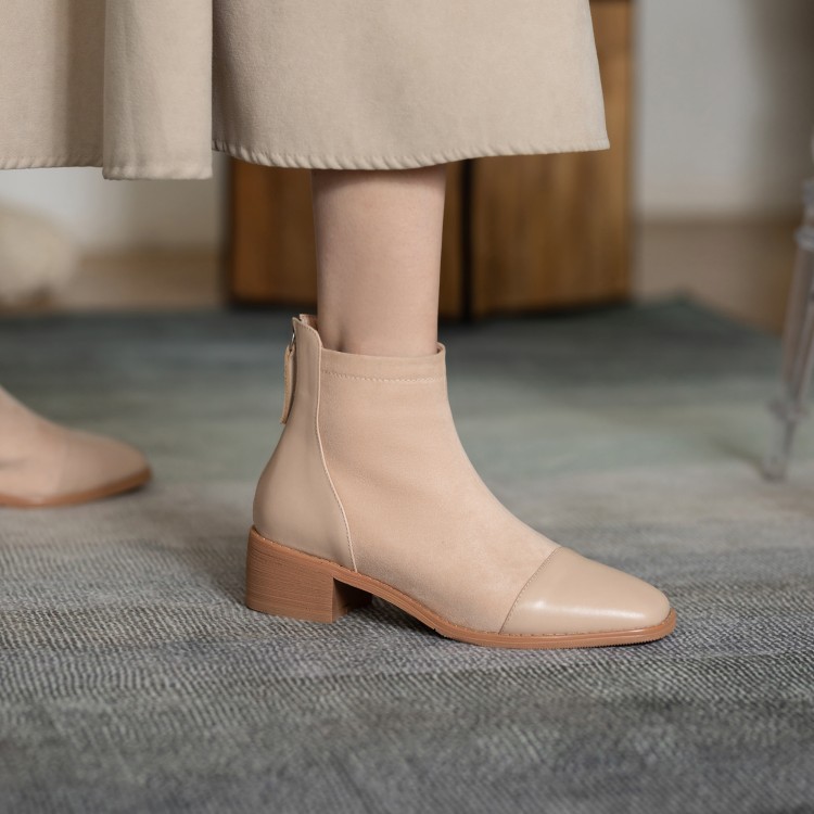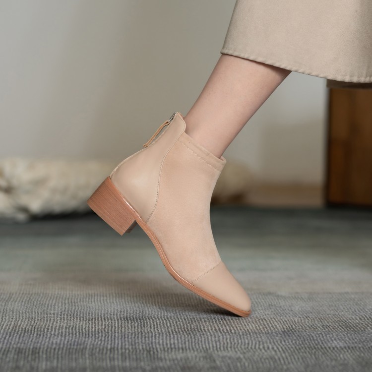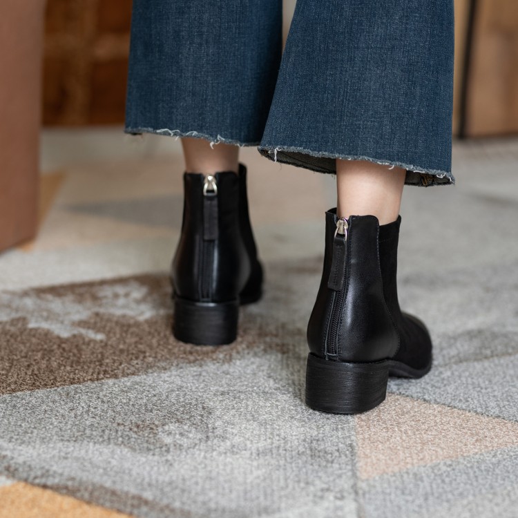 鞋面:牛皮+绒面内里:超纤、绒里鞋底:牛筋底尺码:33-41跟高:4.5厘米颜色:黑色、 杏色掌宽:9厘米36码筒高:12厘米
