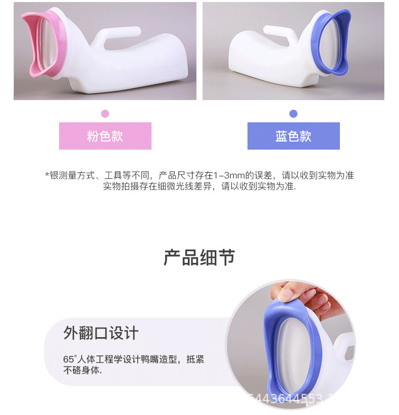 Urinal tempat tidur wanita, pot malam elastis mulut lembut nyaman dengan garis skala Toilet orang tua