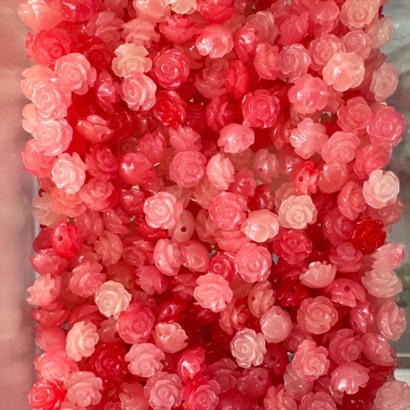 Aksesoris Bunga Mawar Kecil Tekanan Merah Muda Gelang Tangan Bunga Camellia Merah Muda 6mm Aksesori Lubang Horbar Perhiasan