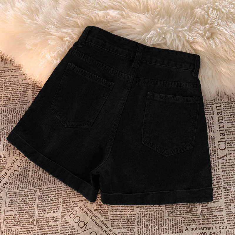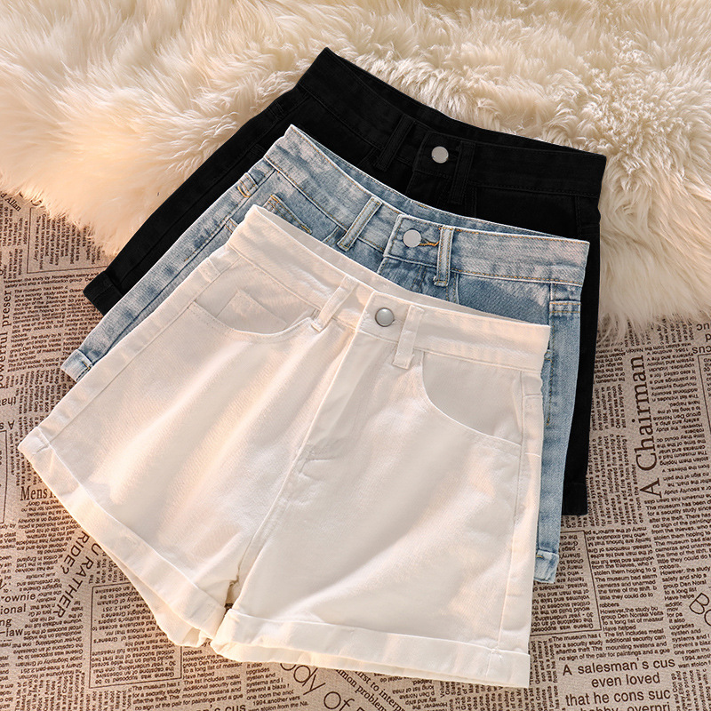 608 celana pendek Denim keriting a-line kasual untuk wanita celana pendek Denim musim panas ramping pinggang tinggi celana pendek Denim wanita