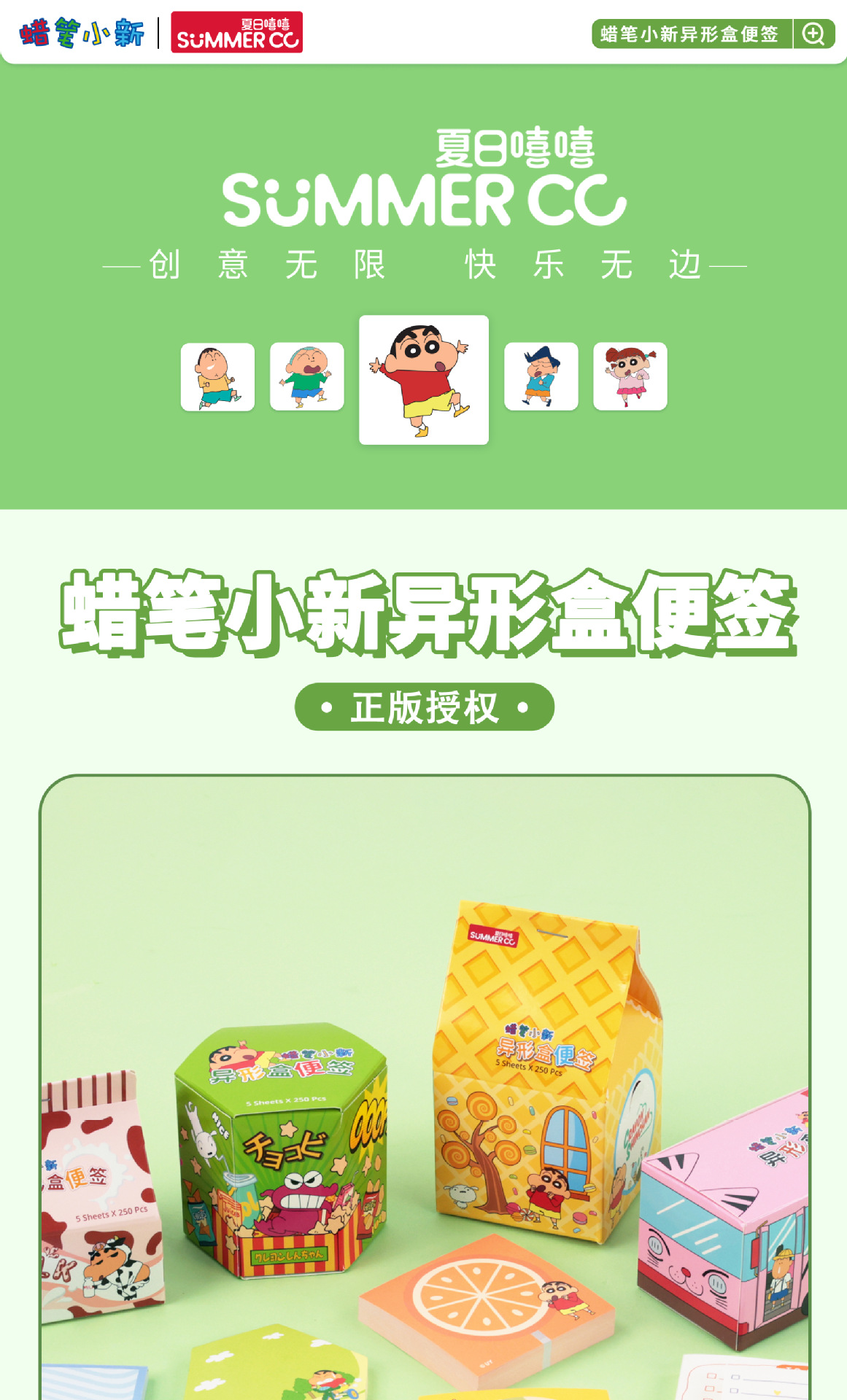 蜡笔小新正版授权*抽拉式便签盒异形便签盒装卡通可爱无粘性可撕