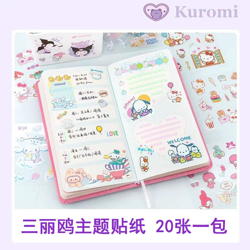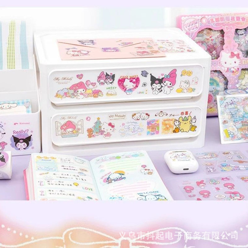 Sanrio Stiker Bahan Instagram PET Stiker Catatan Tangan Stiker Kreatif Tas Tangan Kartun Lucu Anak-anak Wanita Dekorasi