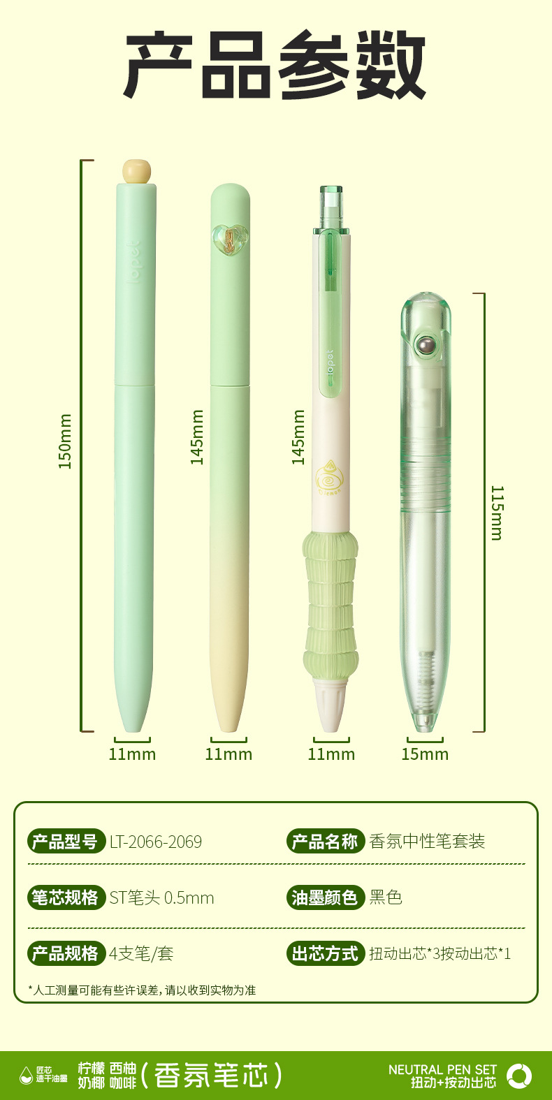 Lopet Produk Baru Peppermint Pena Aroma Garam Laut Latte Pena Netrat Pena Genggam Lembut Licin Murid Cepat Kering 0,5 Hitam