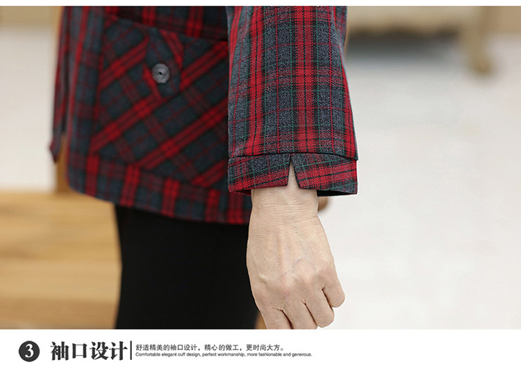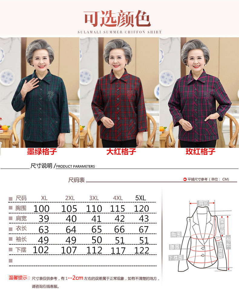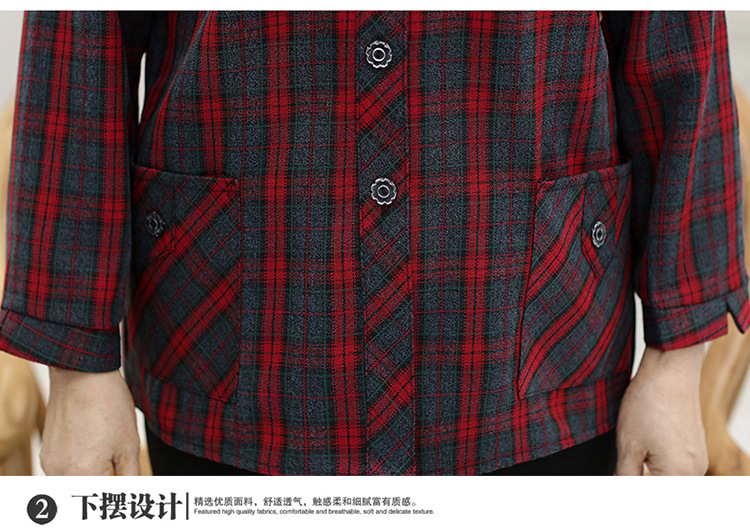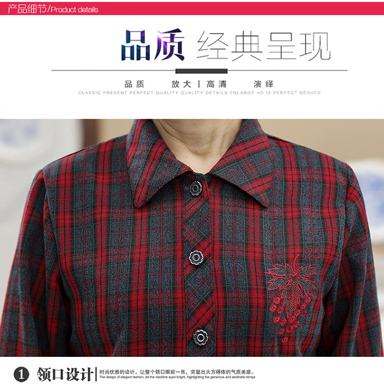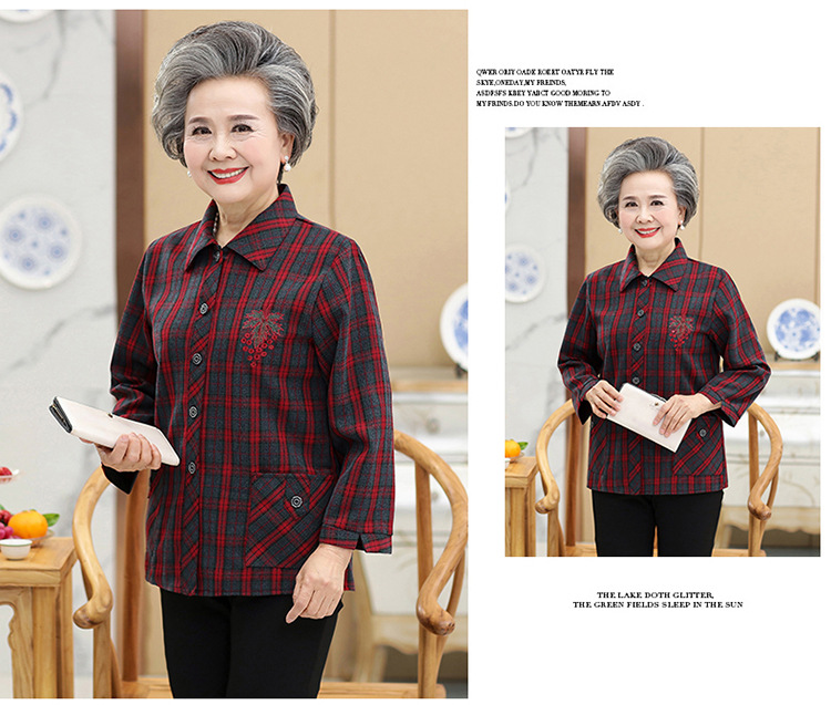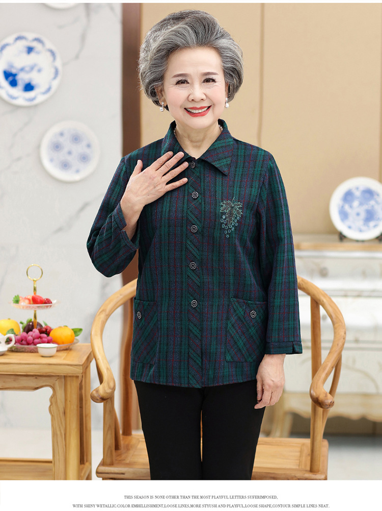 Ibu kemeja musim semi lengan panjang kerah kemeja kotak-kotak Untuk paruh baya dan orang tua musim semi dan musim gugur mantel tipis atasan untuk nenek