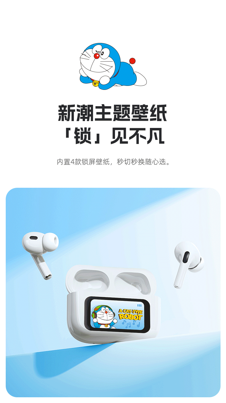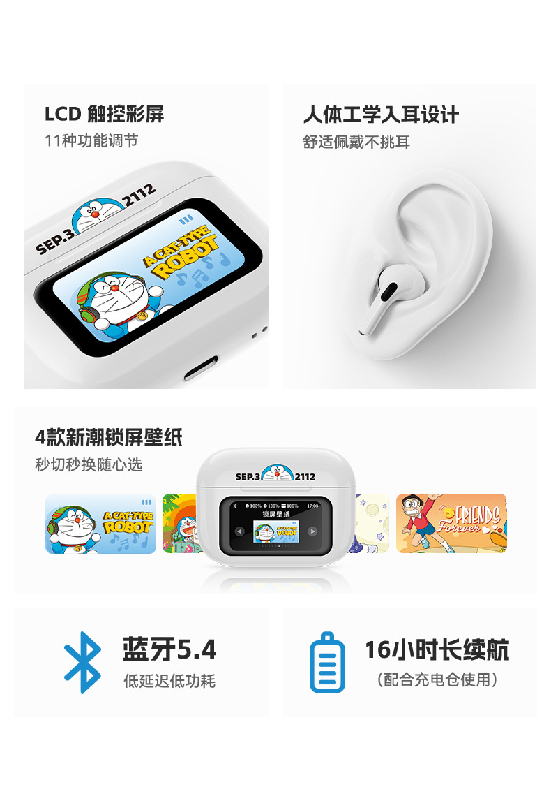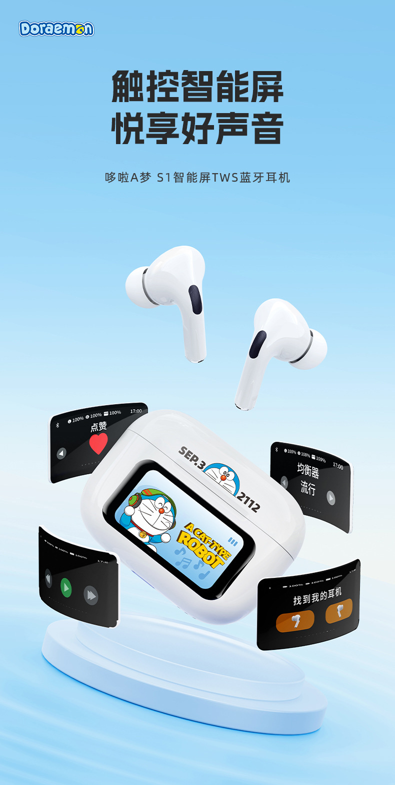 Crayon Doraemon S1 Earphone Bluetooth Nirkabel Earphone Olahraga Earphone Layar Warna High-end Layar Sentuh Cerdas