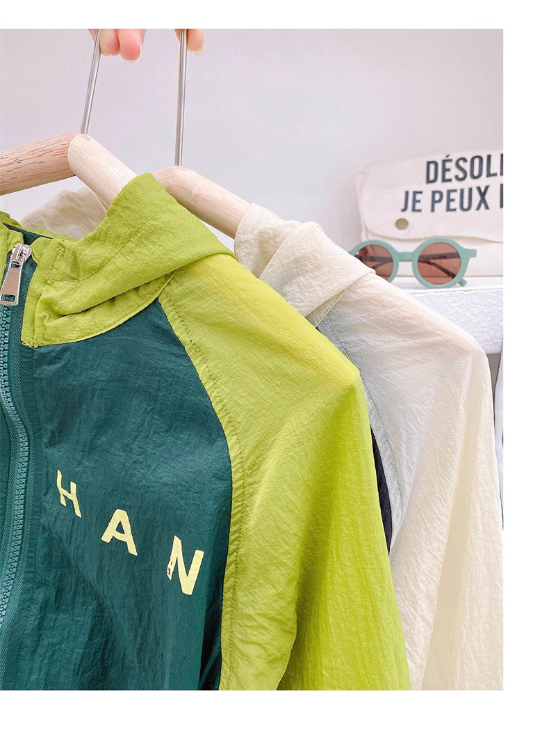 Jaket bertudung anak-anak, pakaian musim panas anak-anak laki-laki, ringan, bersirkulasi, olahraga, bayi perempuan, kardigan tipis, mantel kulit