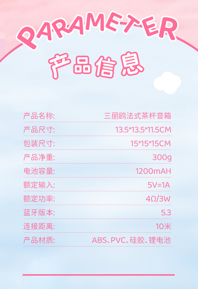 tcc三丽鸥正版卡通茶杯蓝牙音响学生女可爱桌面摆件1200mAh音箱