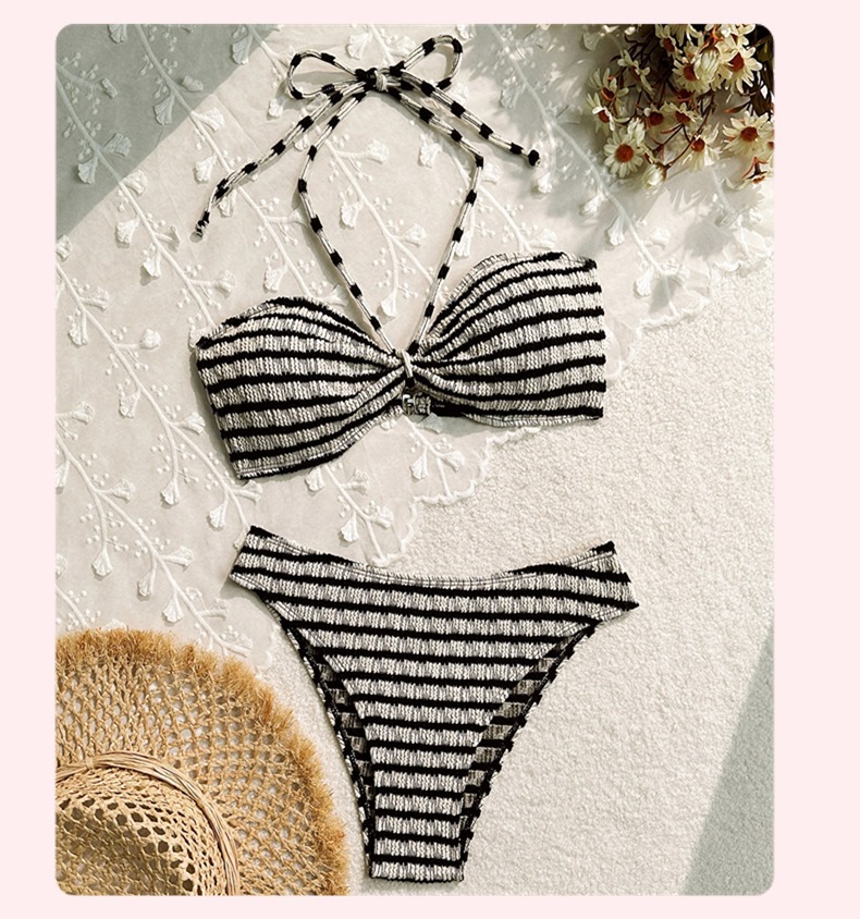 Bikini lintas batas baru Eropa dan Amerika baju renang motif garis terpisah baju renang liburan pantai seksi wanita dalam stok perdagangan luar negeri
