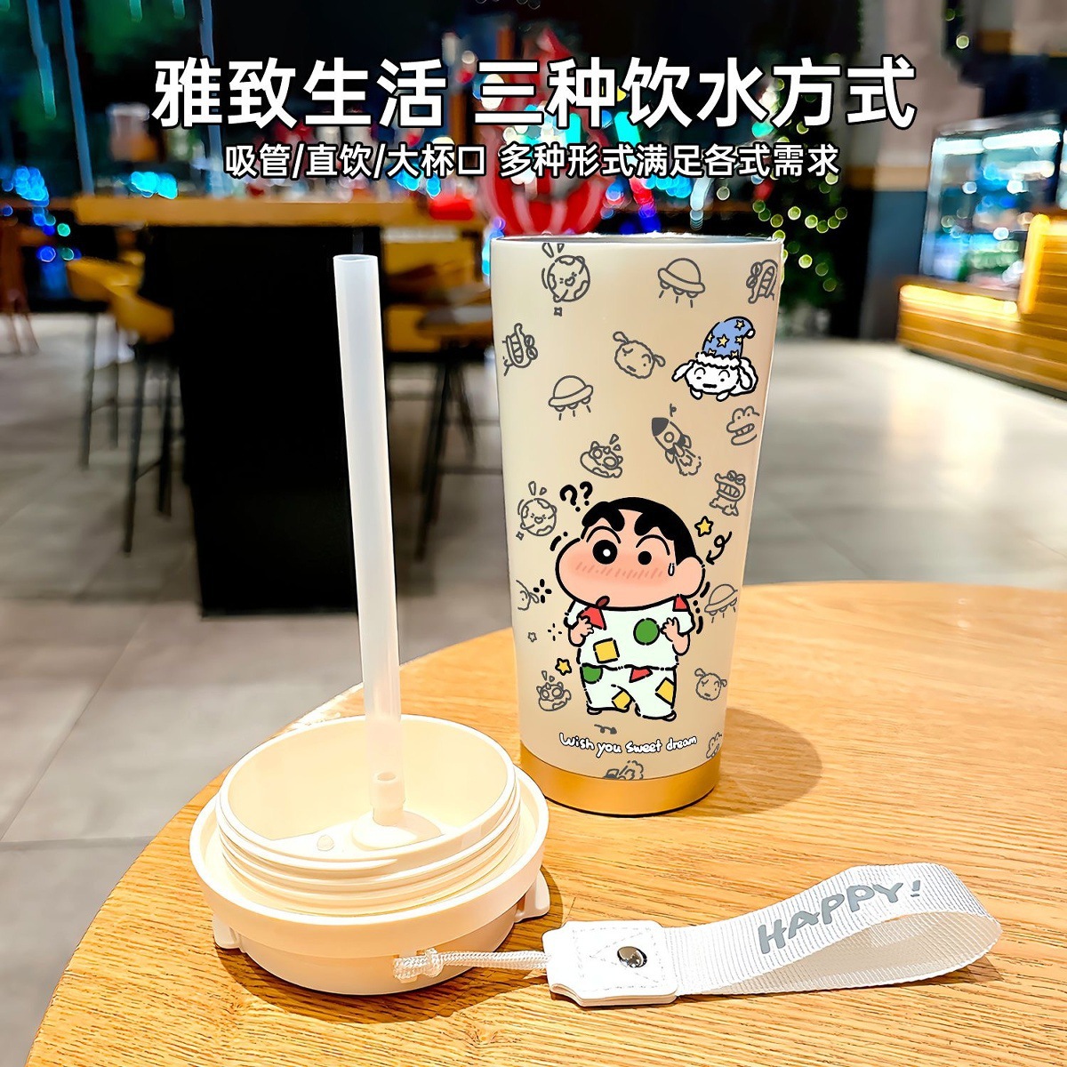 保温杯学生上学专用吸管水杯子大容量不锈钢咖啡杯高颜值