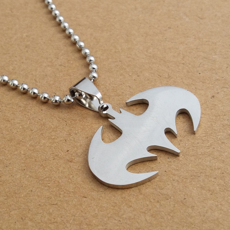 Kalung cosplay gaya Korea, aksesoris perhiasan cosplay gaya Eropa dan Amerika, liontin baja titanium, Kalung Batman stainless steel pria dan wanita