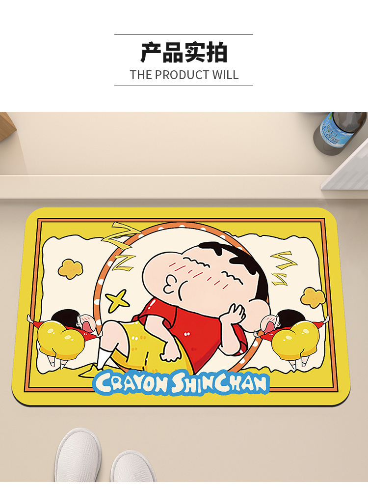 Alas Lantai Kartun Dopamin Crayon Kecil Keset Lantai Gaya Lumpur Diatom Keset Lantai Kamar Mandi Alas Kaki Penyerap Air Kamar Mandi