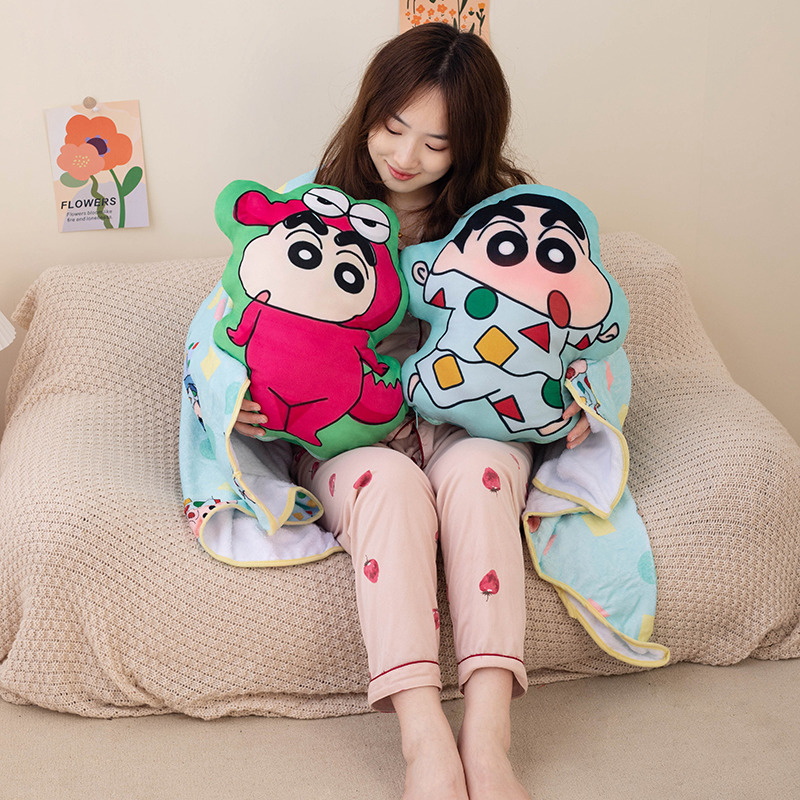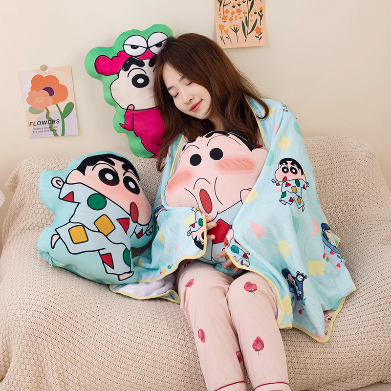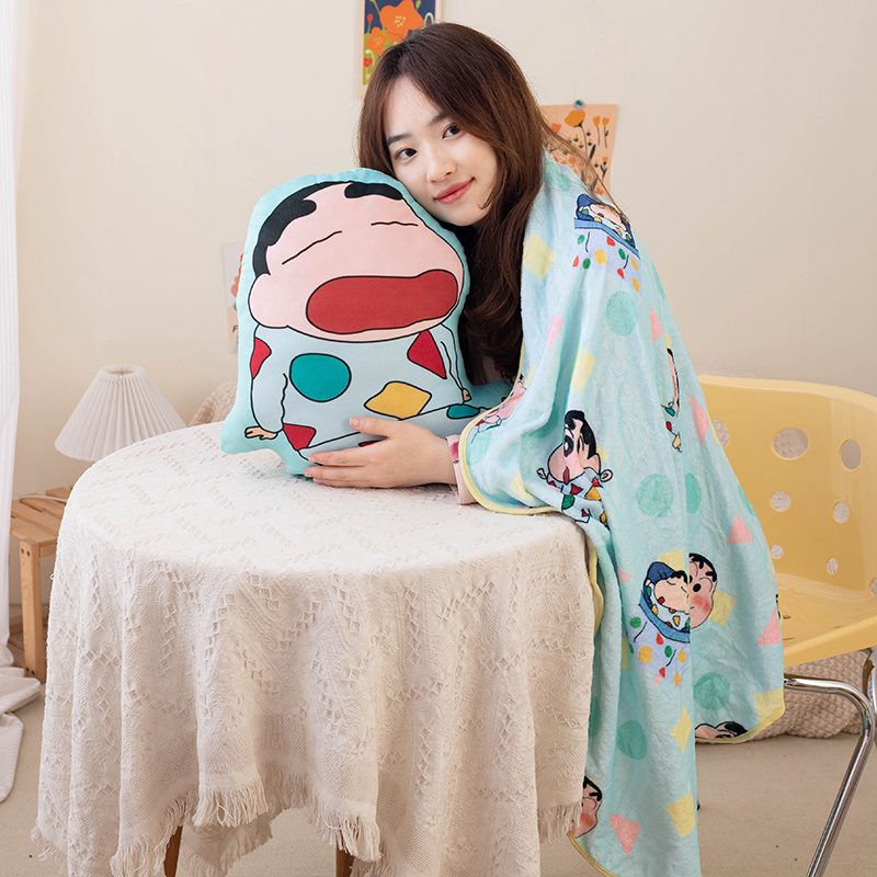 Krayon gaya Jepang selimut bantal baru penggunaan ganda selimut AC mobil kantor selimut bantal tidur siang bantal bantal punggung