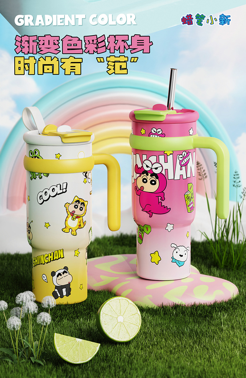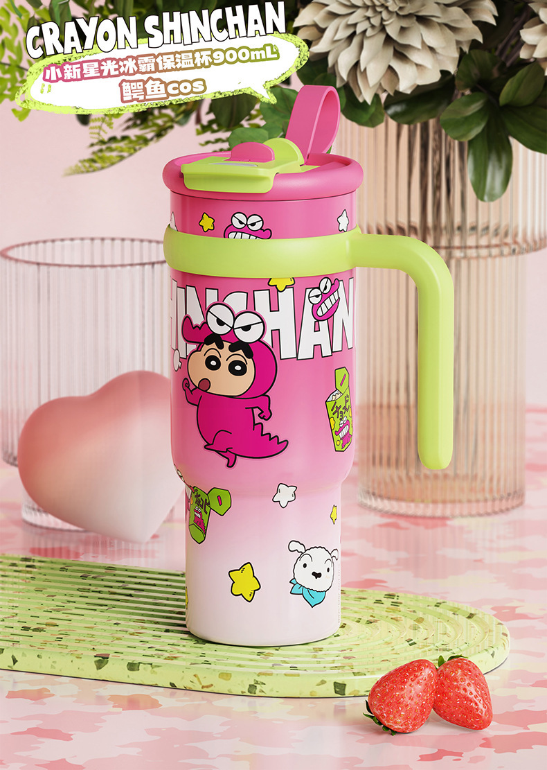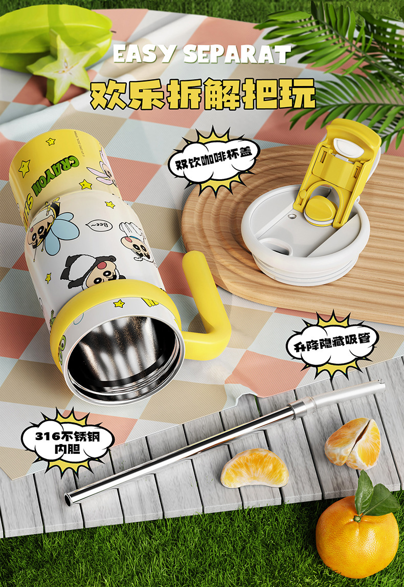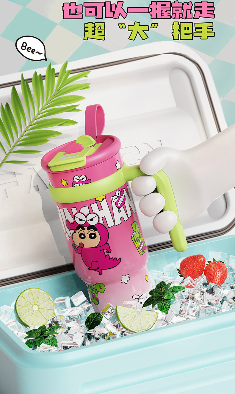 Cangkir Termos Crayon Xiaxin Cangkir Sedotan Kapasitas Besar Cangkir Air Big Mac Dengan Pegangan Cangkir Es Nilai Wajah Tinggi