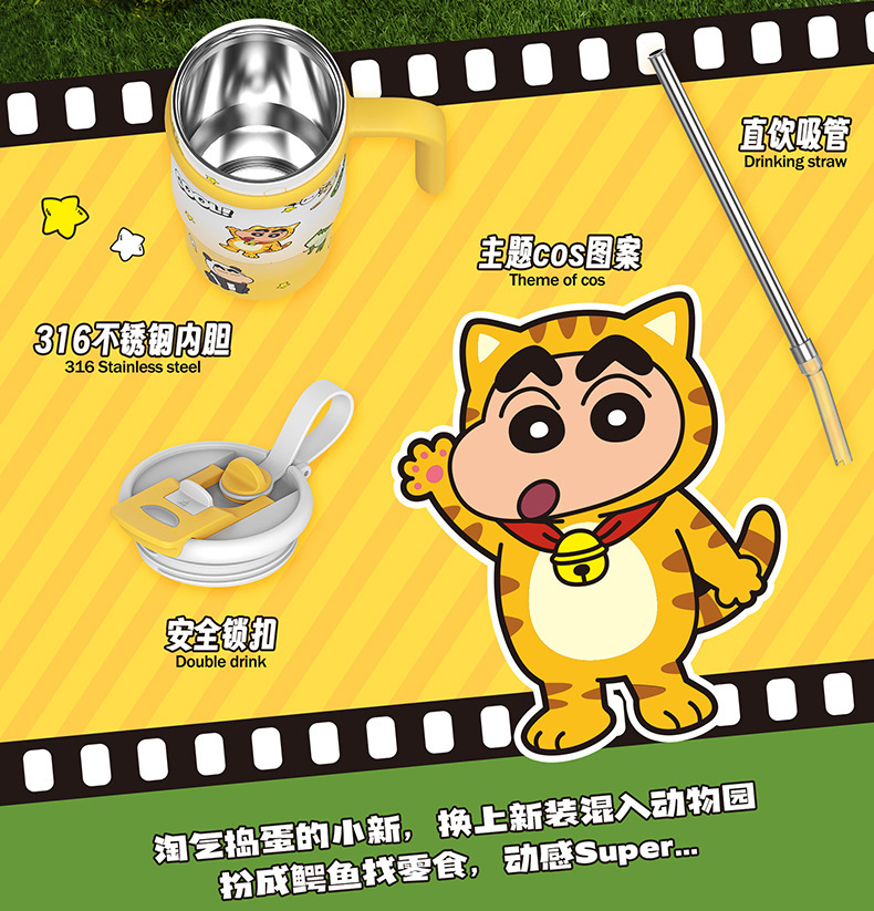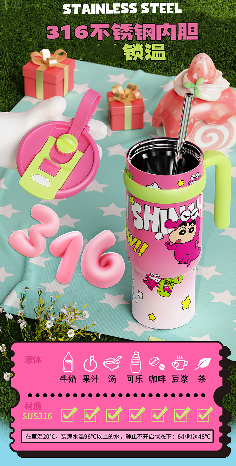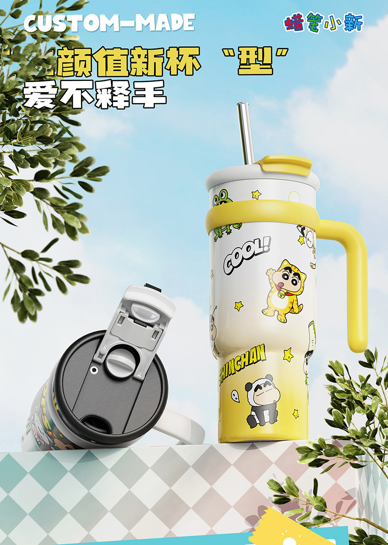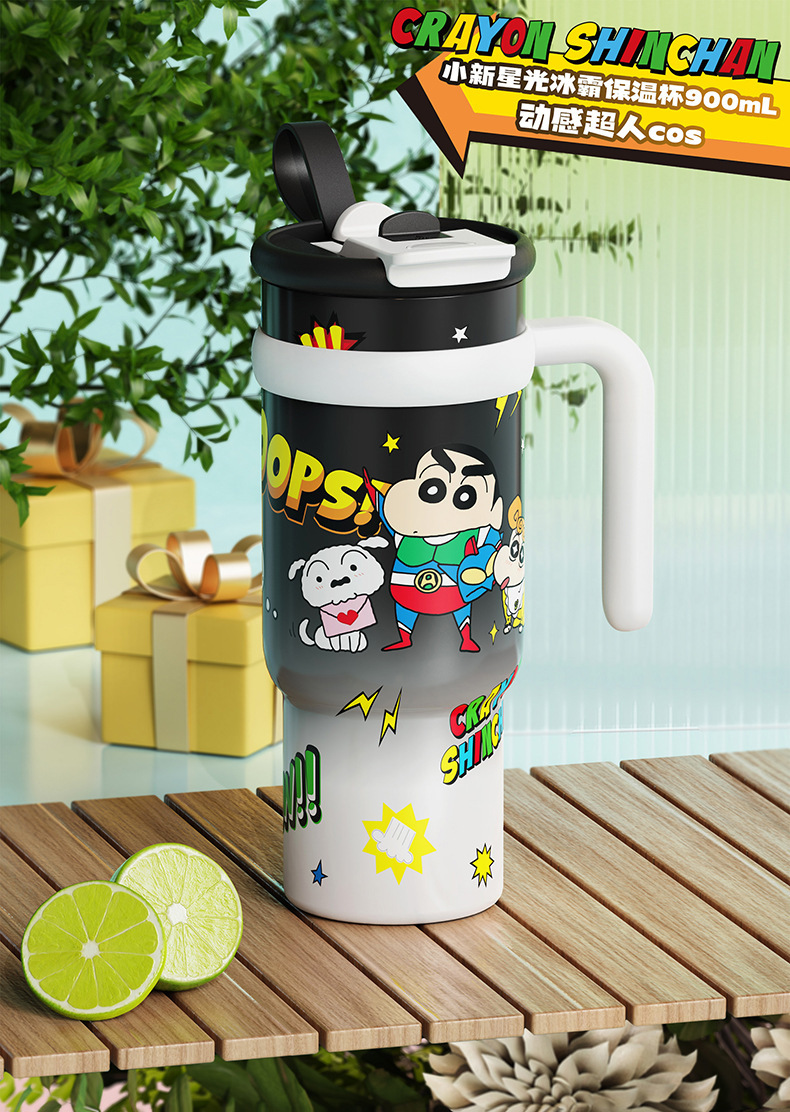 Cangkir Termos Crayon Xiaxin Cangkir Sedotan Kapasitas Besar Cangkir Air Big Mac Dengan Pegangan Cangkir Es Nilai Wajah Tinggi