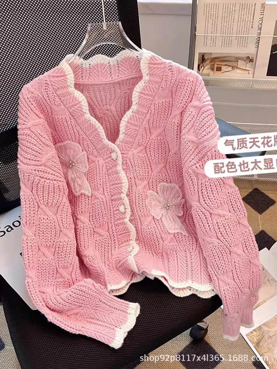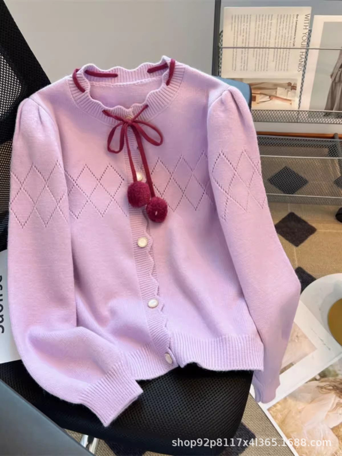 韩系可爱风春季女式开衫针织衫外套小清新女装毛衣小开衫直播货源