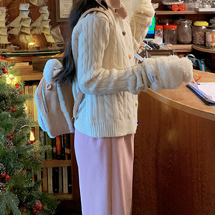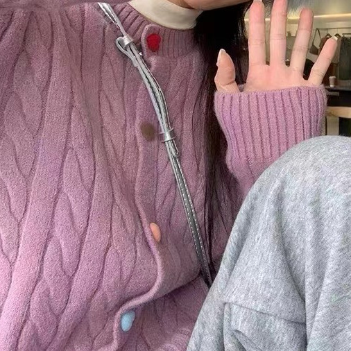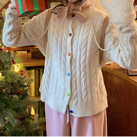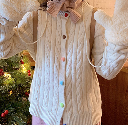 新款女装软糯爱心纽扣麻花针织开衫女冬季复古内搭毛衣外套女