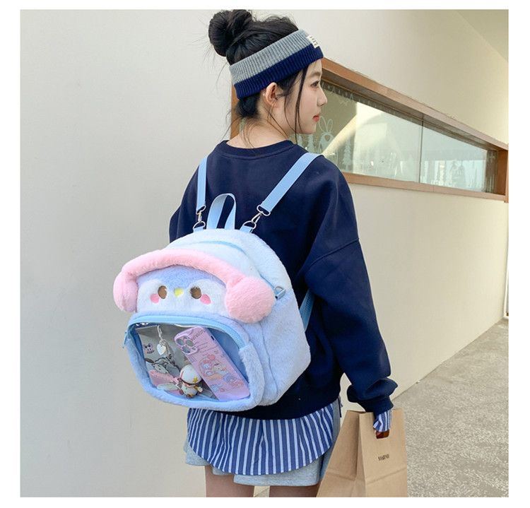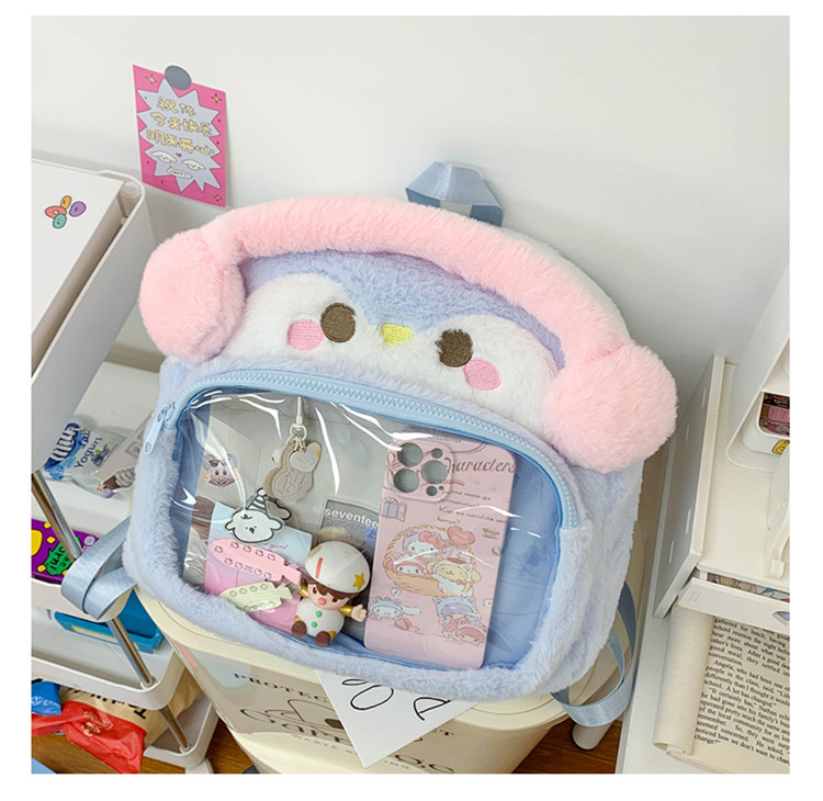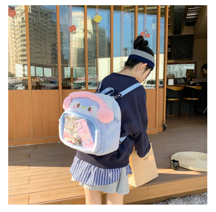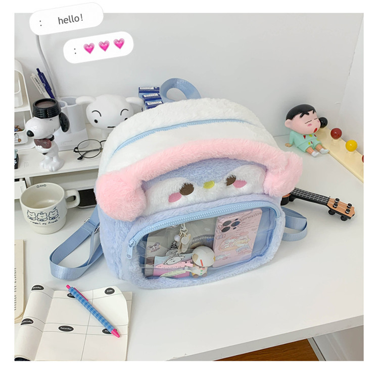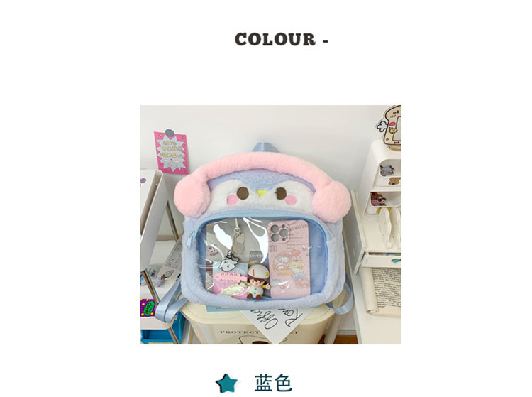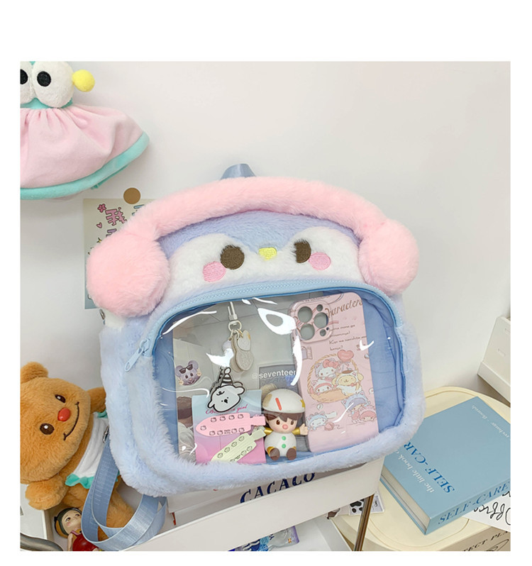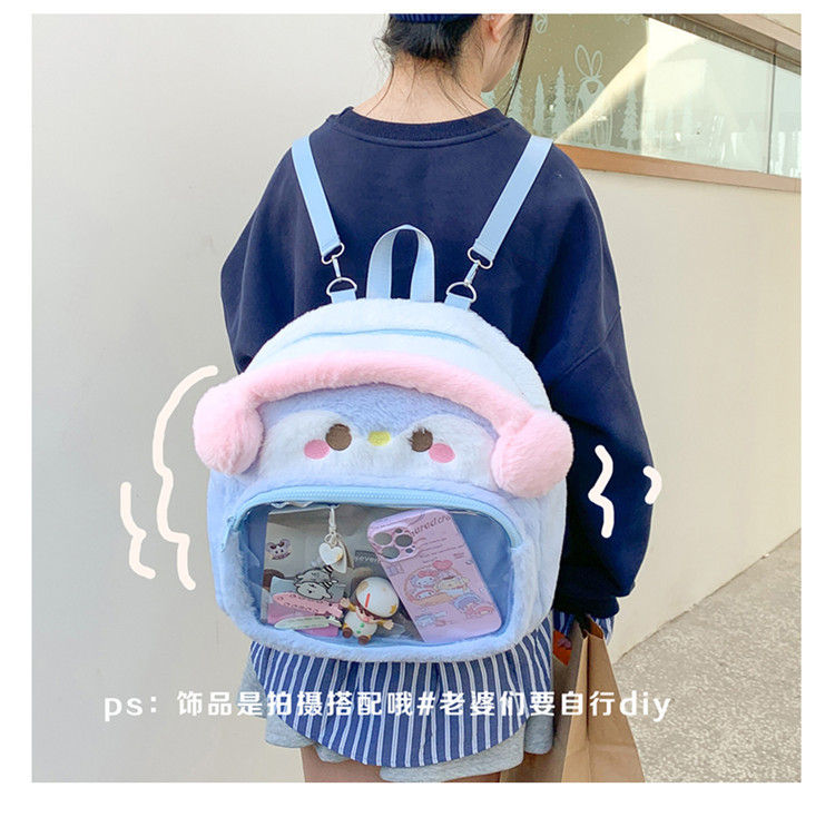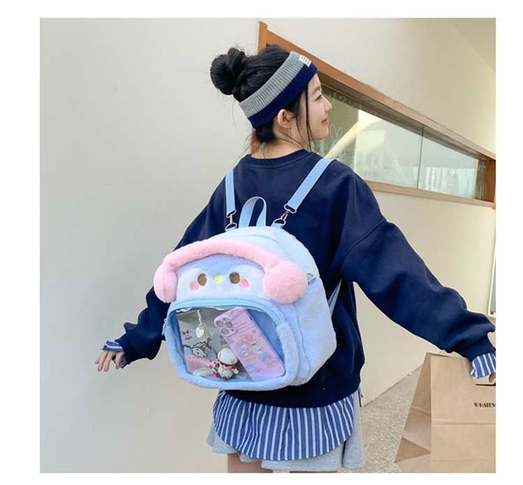 Earphone Biru Nilai Tinggi Penguin Tas Sekolah Siswa Kapasitas Besar Tas Ransel Kartun Tas Ransel Berbulu Lucu