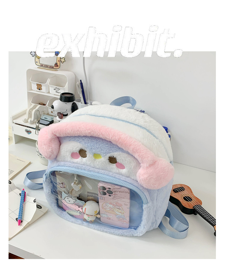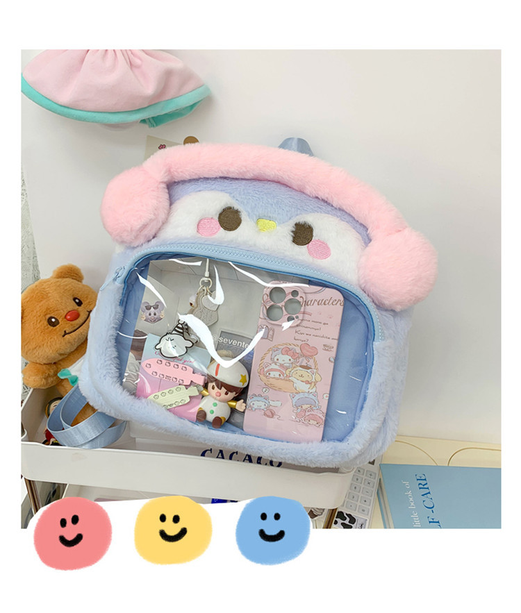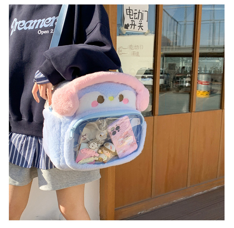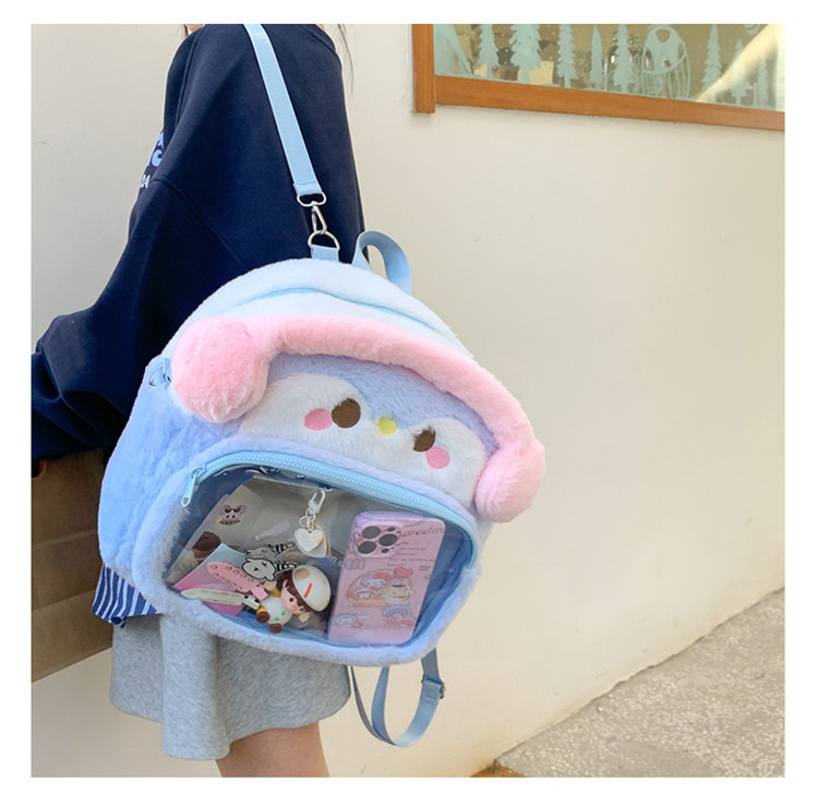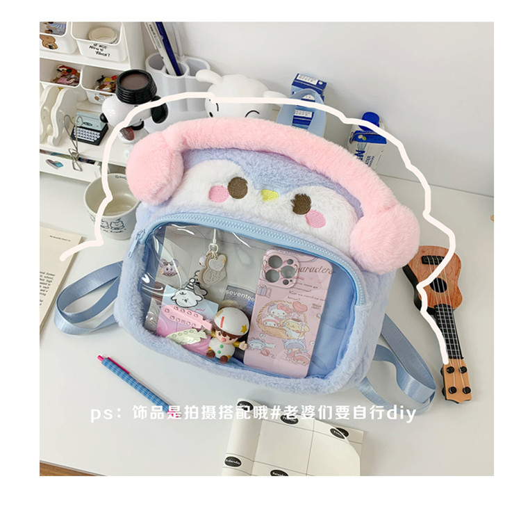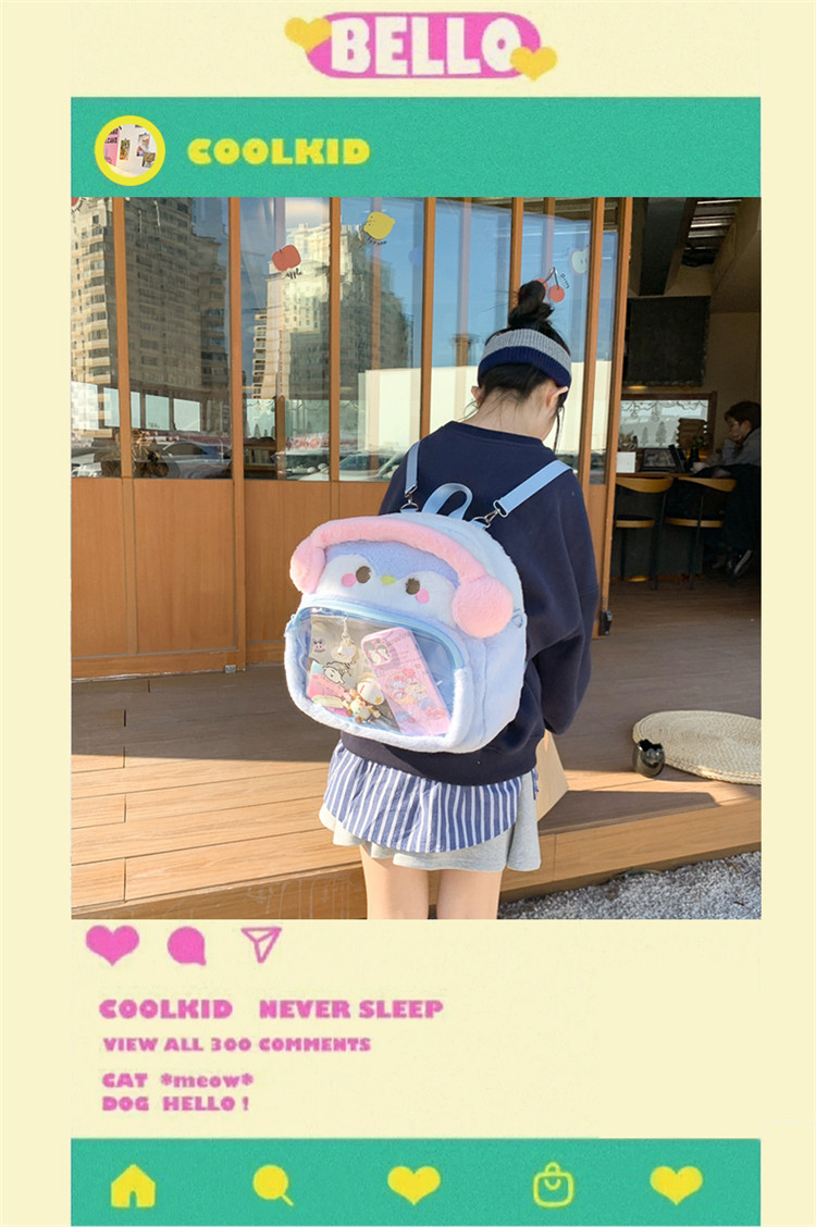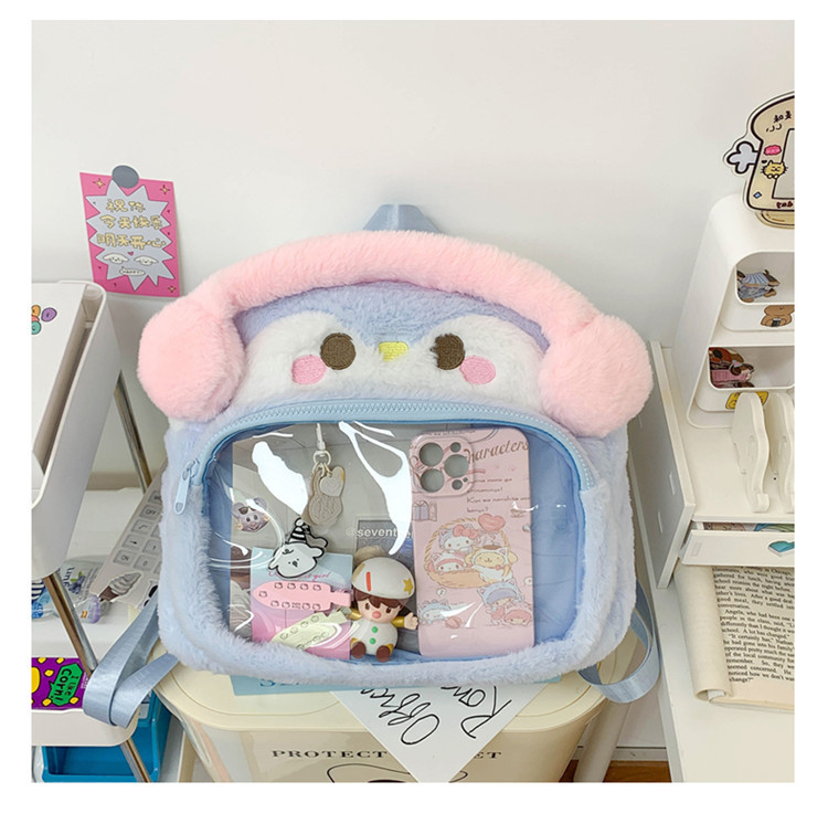 Earphone Biru Nilai Tinggi Penguin Tas Sekolah Siswa Kapasitas Besar Tas Ransel Kartun Tas Ransel Berbulu Lucu