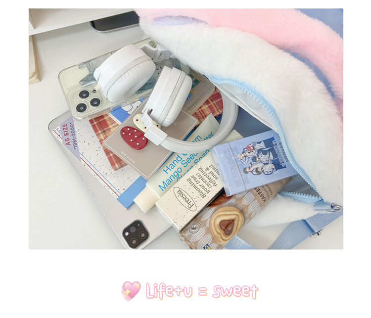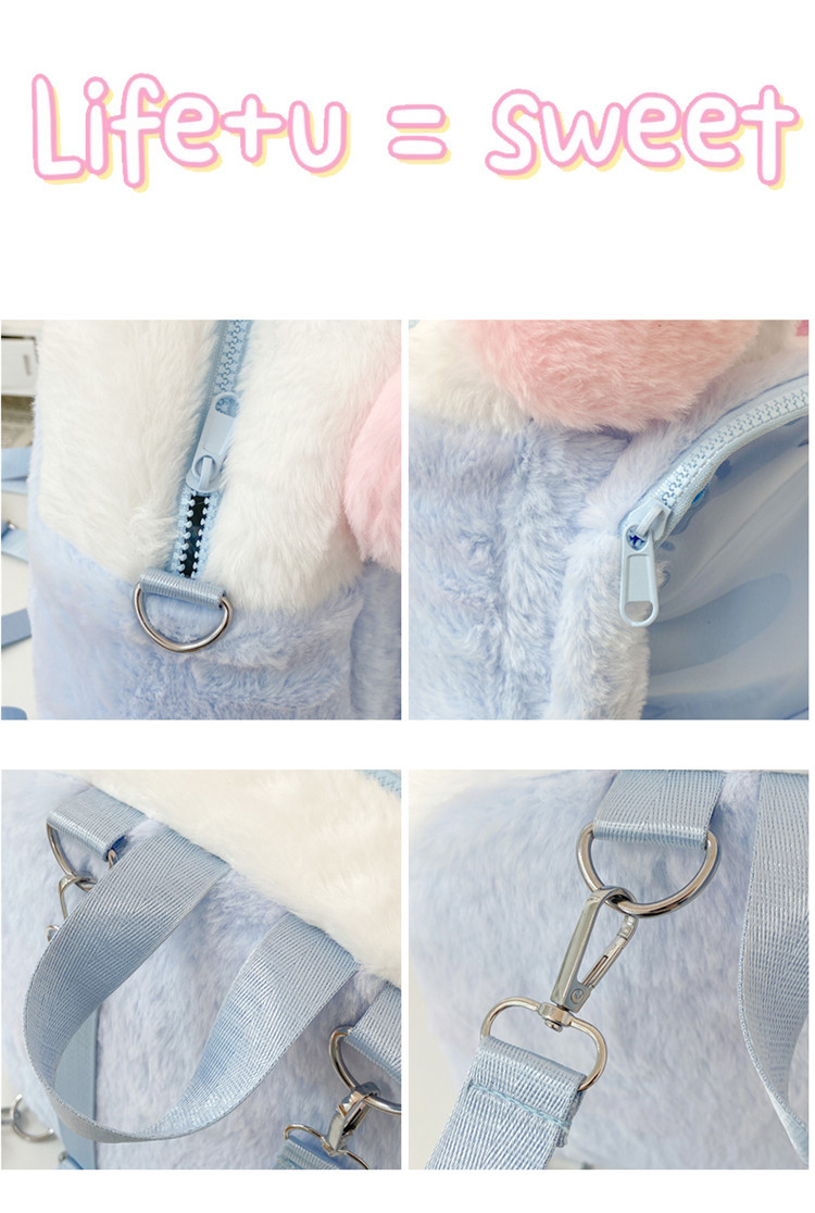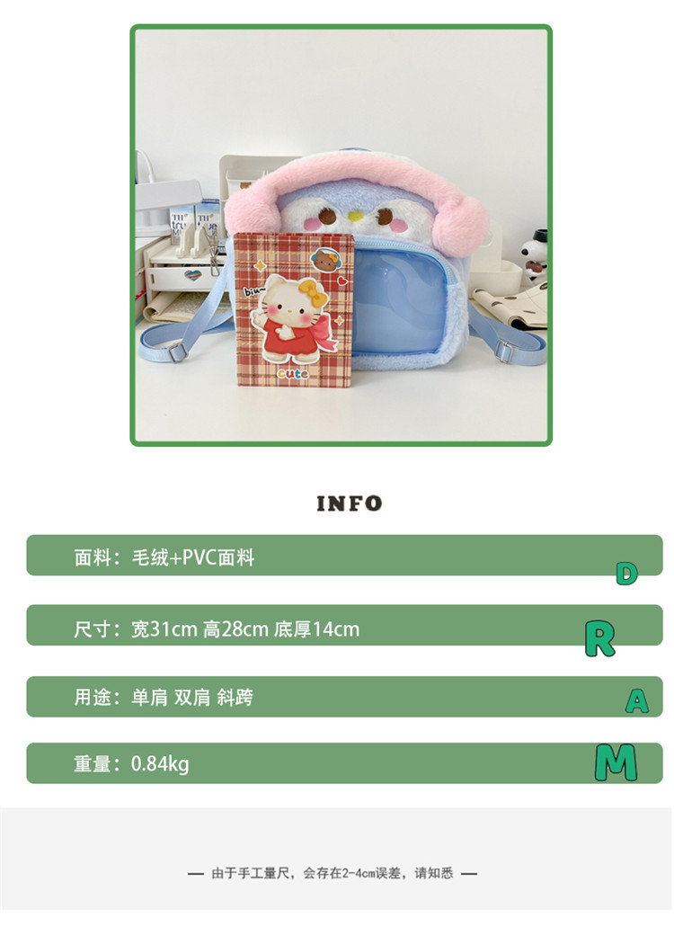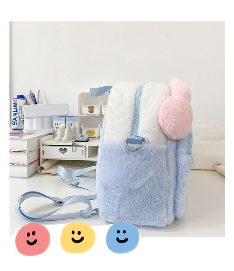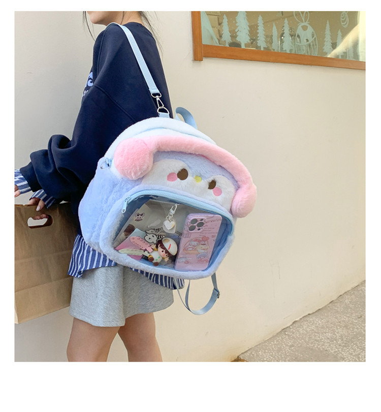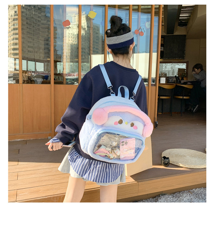 Earphone Biru Nilai Tinggi Penguin Tas Sekolah Siswa Kapasitas Besar Tas Ransel Kartun Tas Ransel Berbulu Lucu