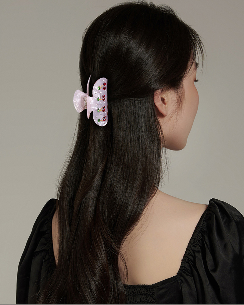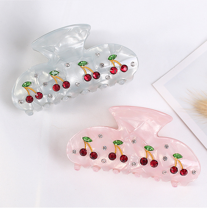 Baoguang klip rambut akrilik anak perempuan, aksesori rambut updo sederhana mode ceri super peri dengan klip ambil berlian Musim Semi/musim panas