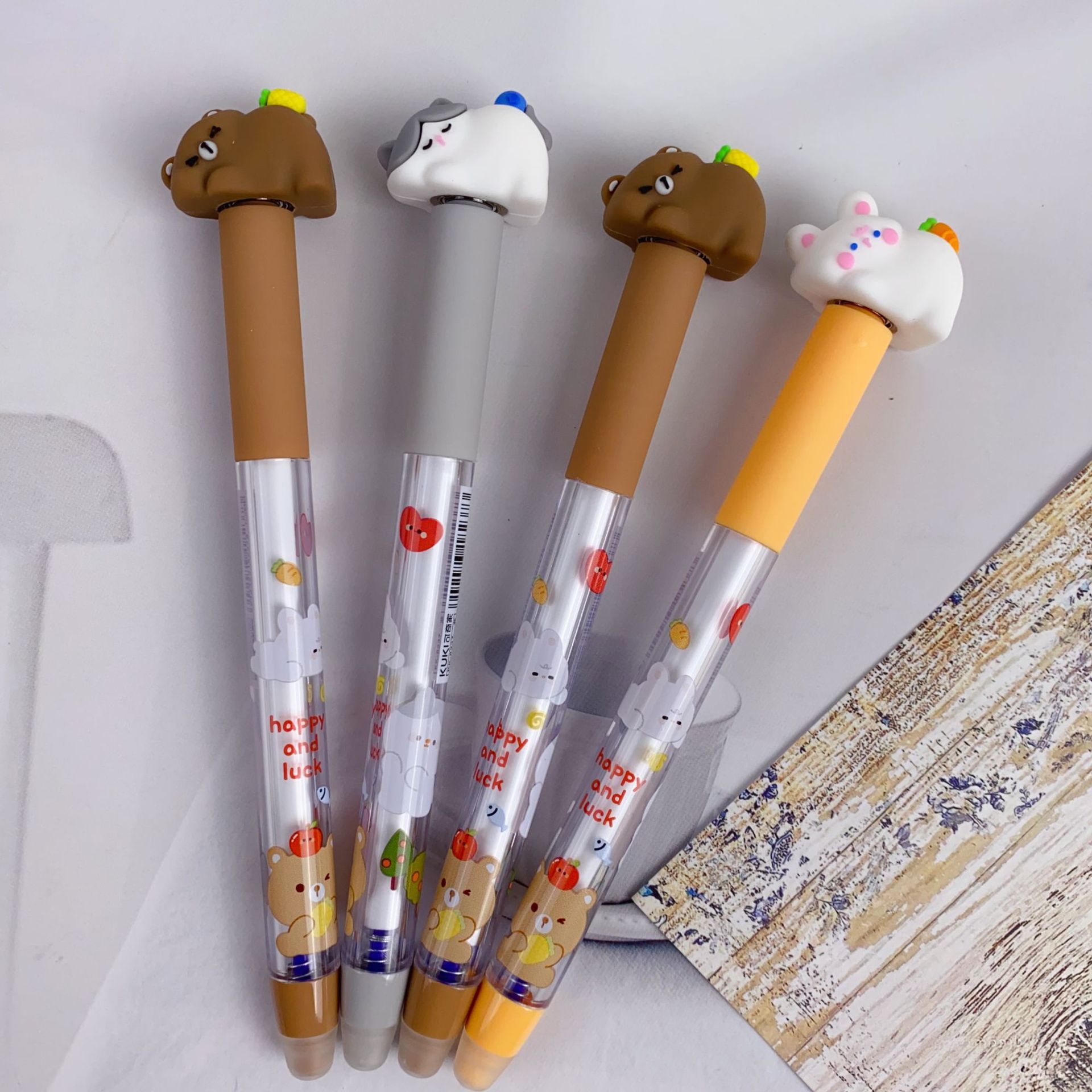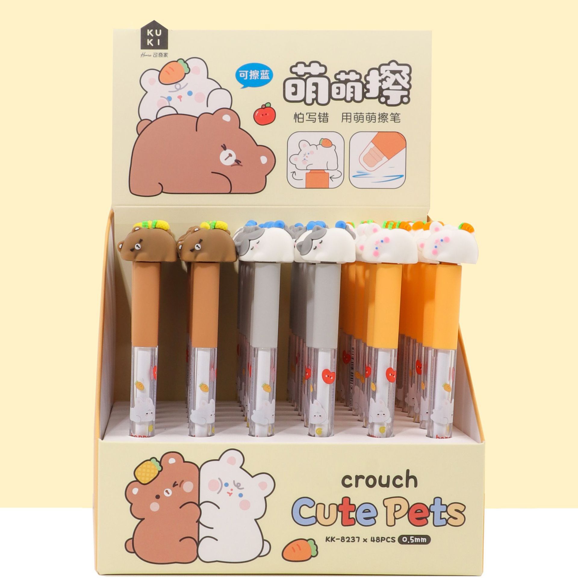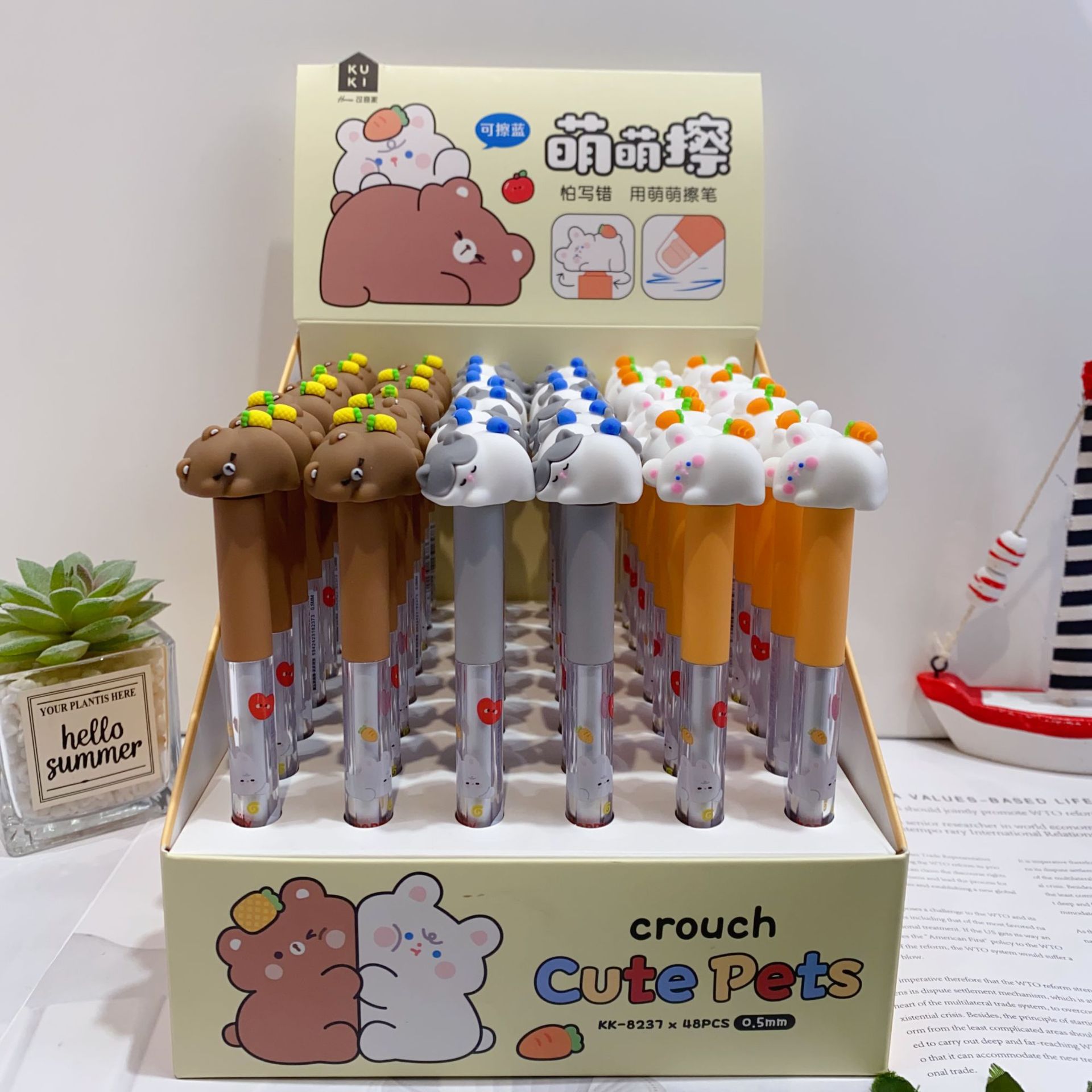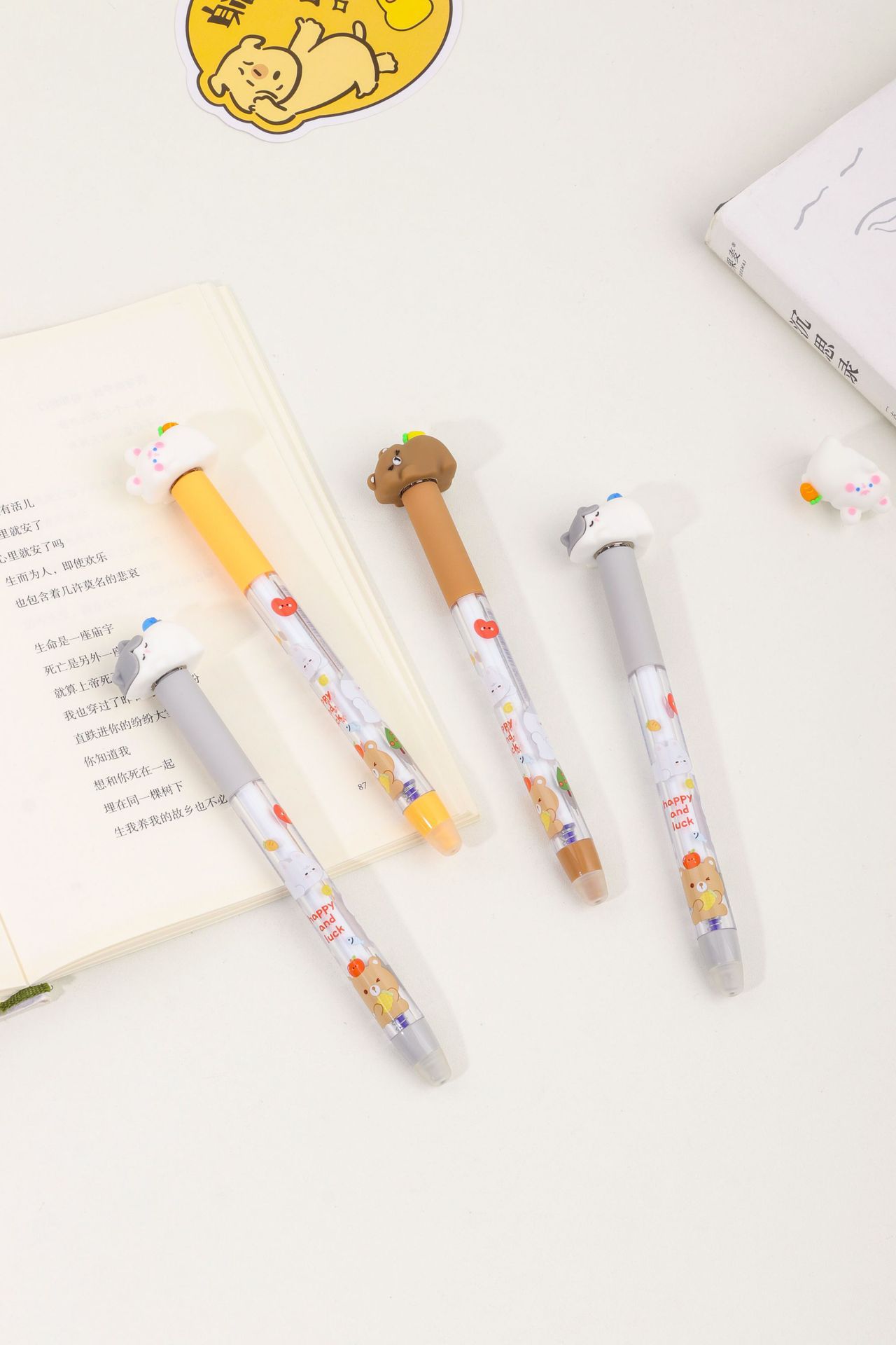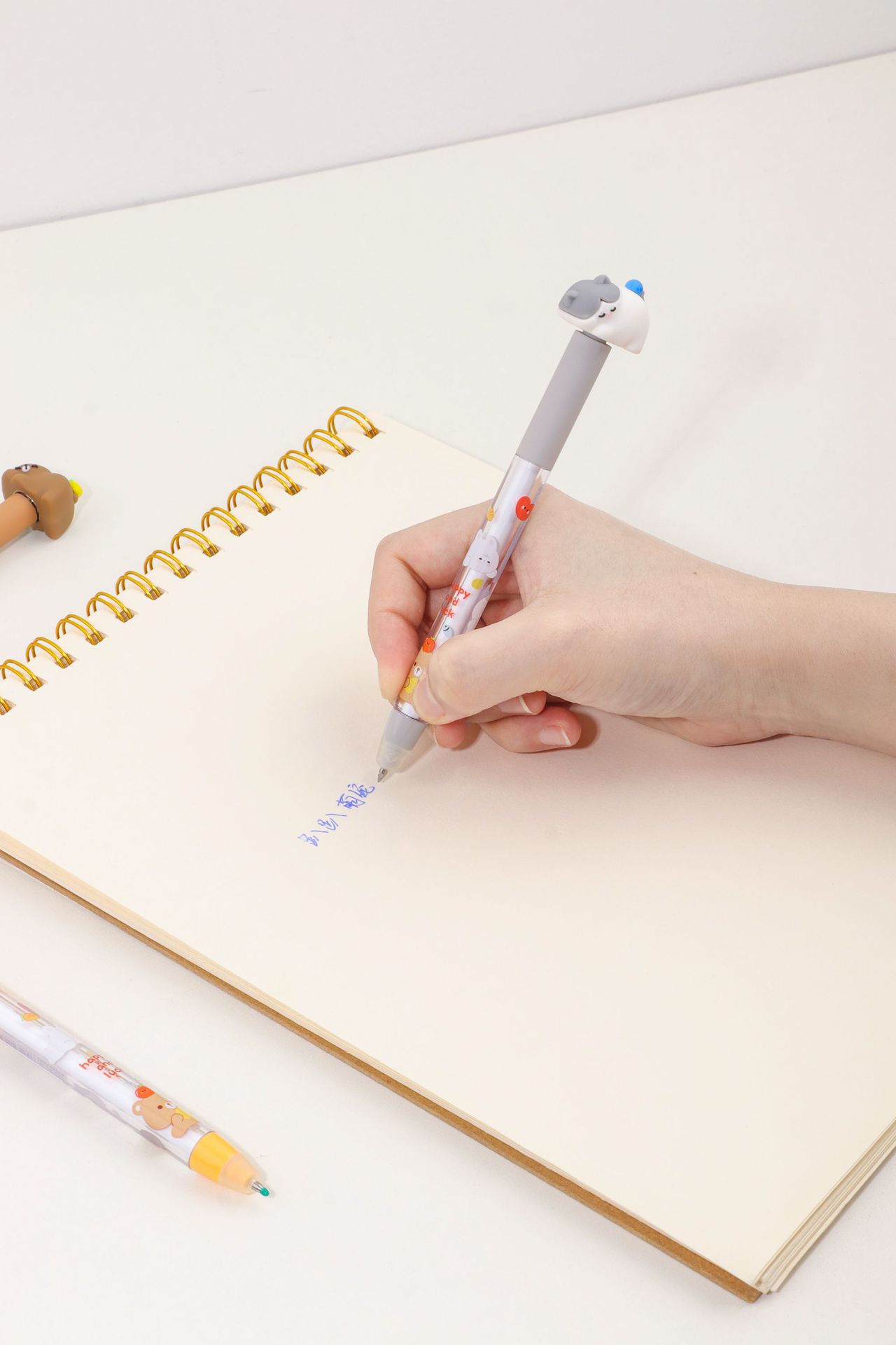 可奇新款解压转转笔可爱趴趴萌宠创意造型旋转中性笔蓝色可擦水笔