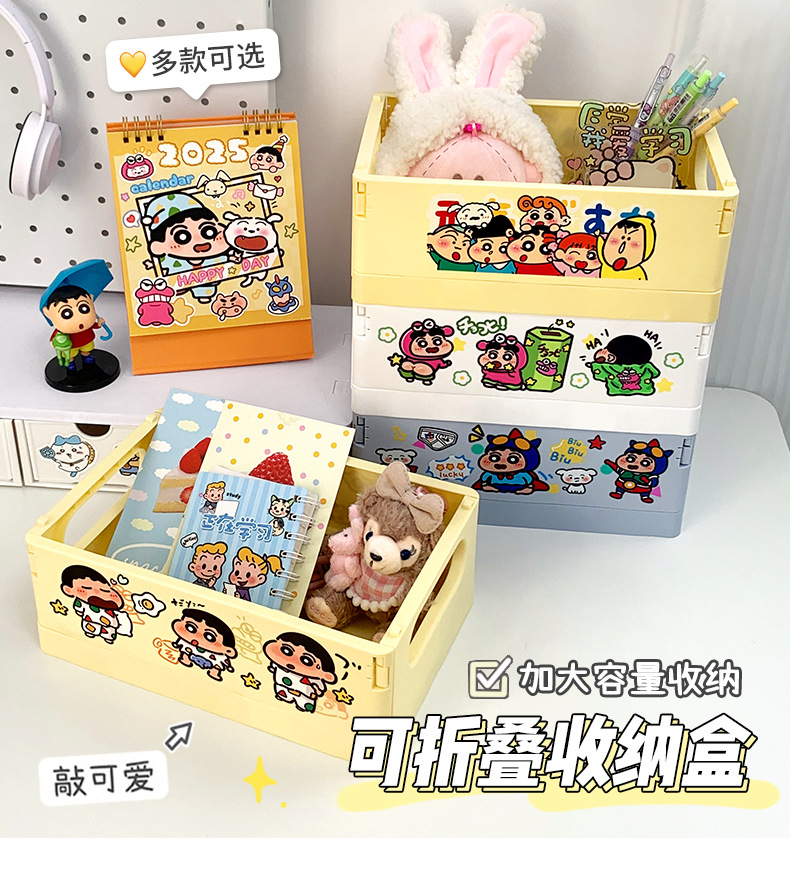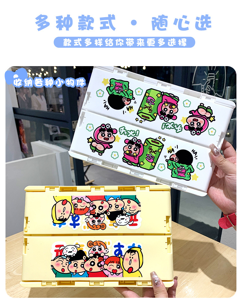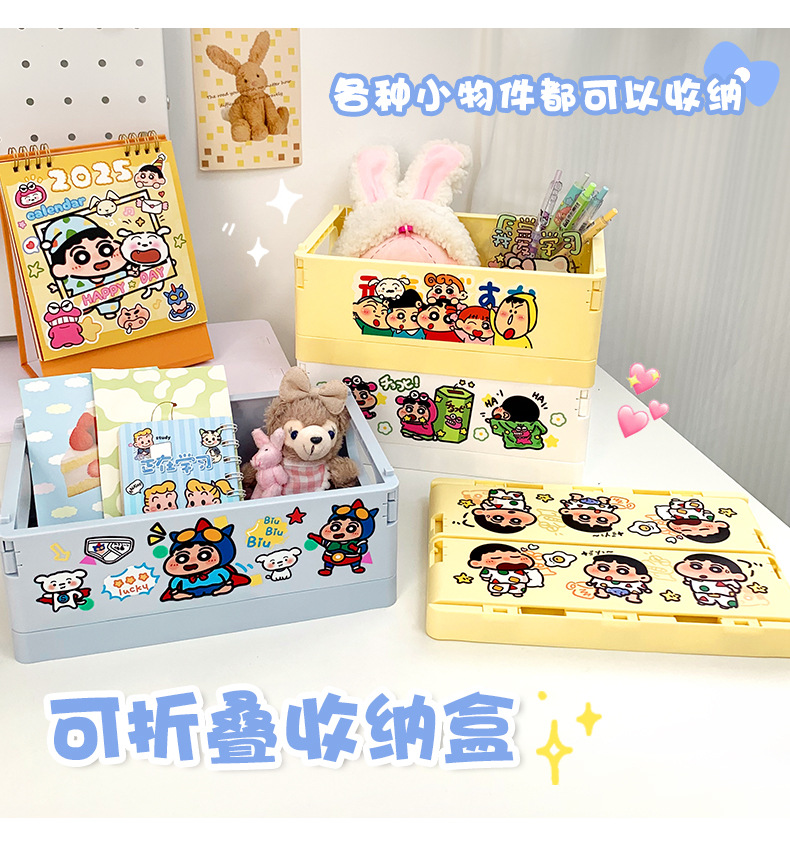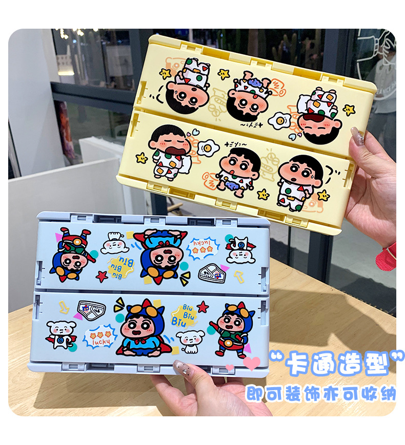长方形卡通大号桌面收纳盒护肤品口红折叠迷你小新整理盒杂物收纳