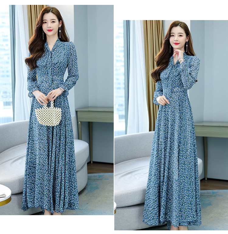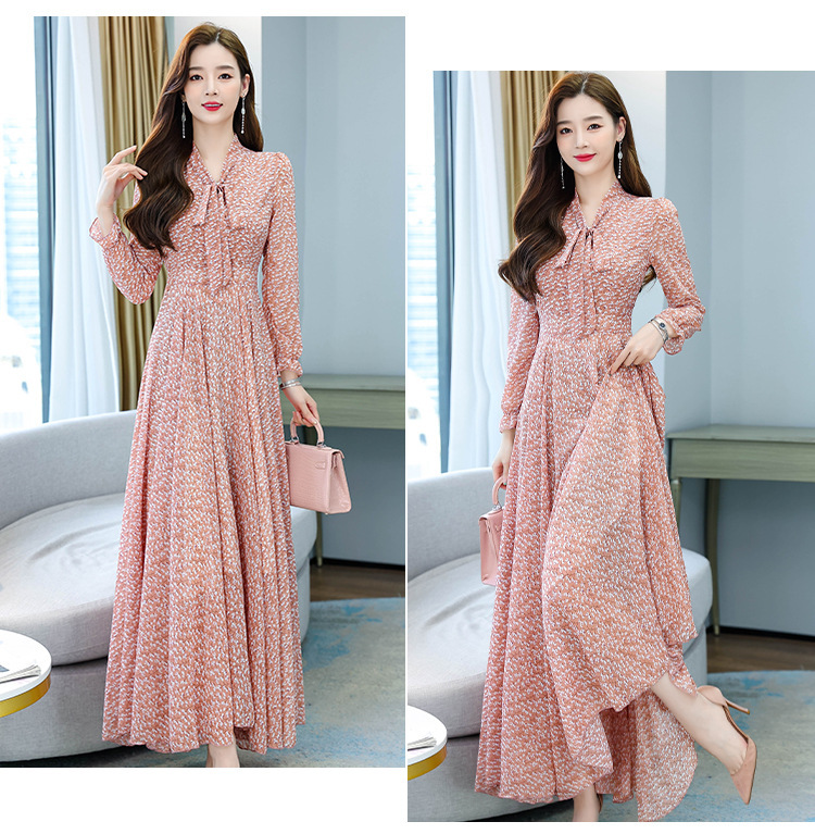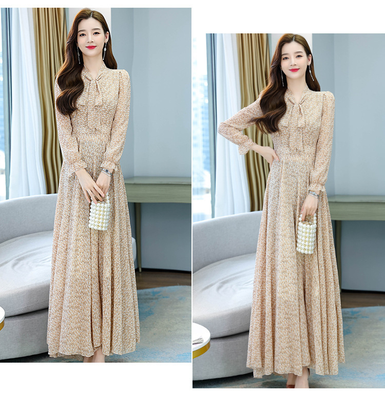 Gaun Gaya Korea 2025 Musim Semi dan Musim Panas Gaun Panjang Wanita Sifon Pantai Peri Super Ayunan Besar Gaya Barat Kelas Atas