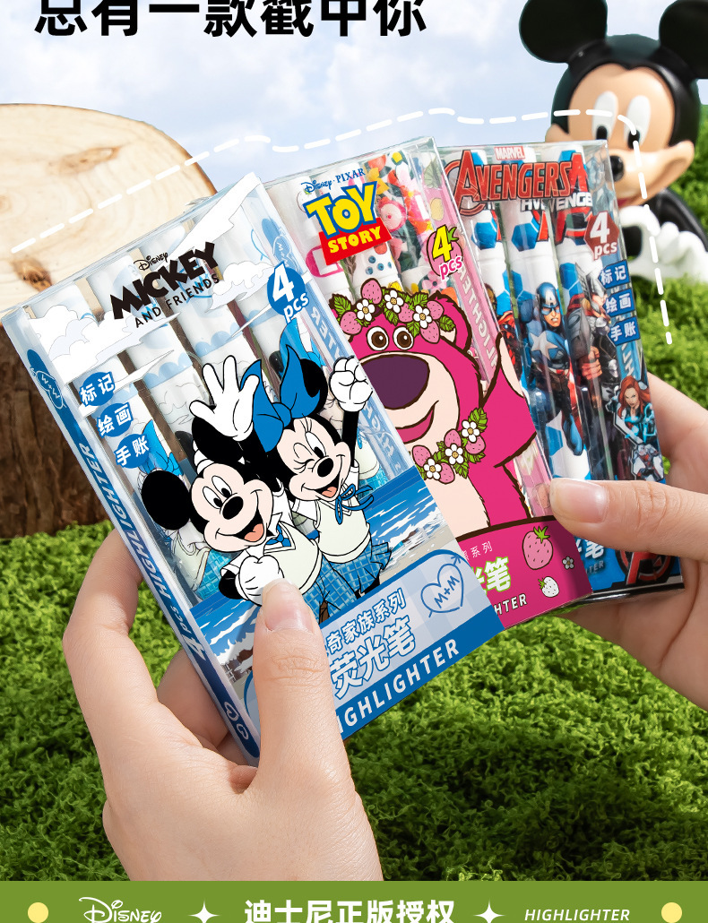 米奇荧光笔套装高颜值学生重点标记记号笔小学生卡通手账彩笔批发