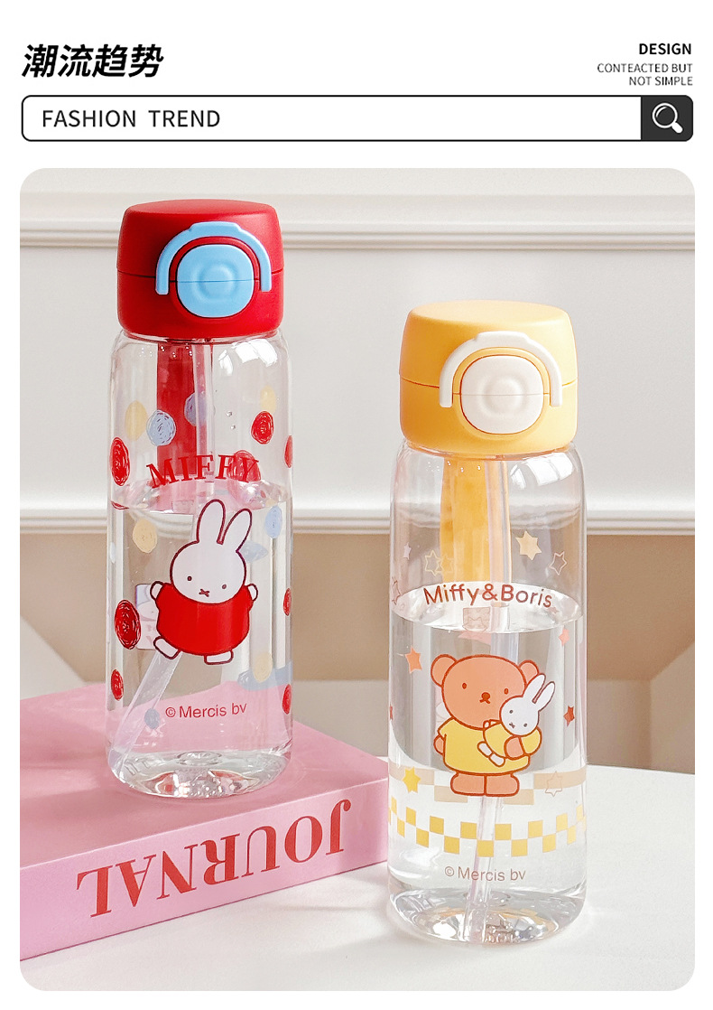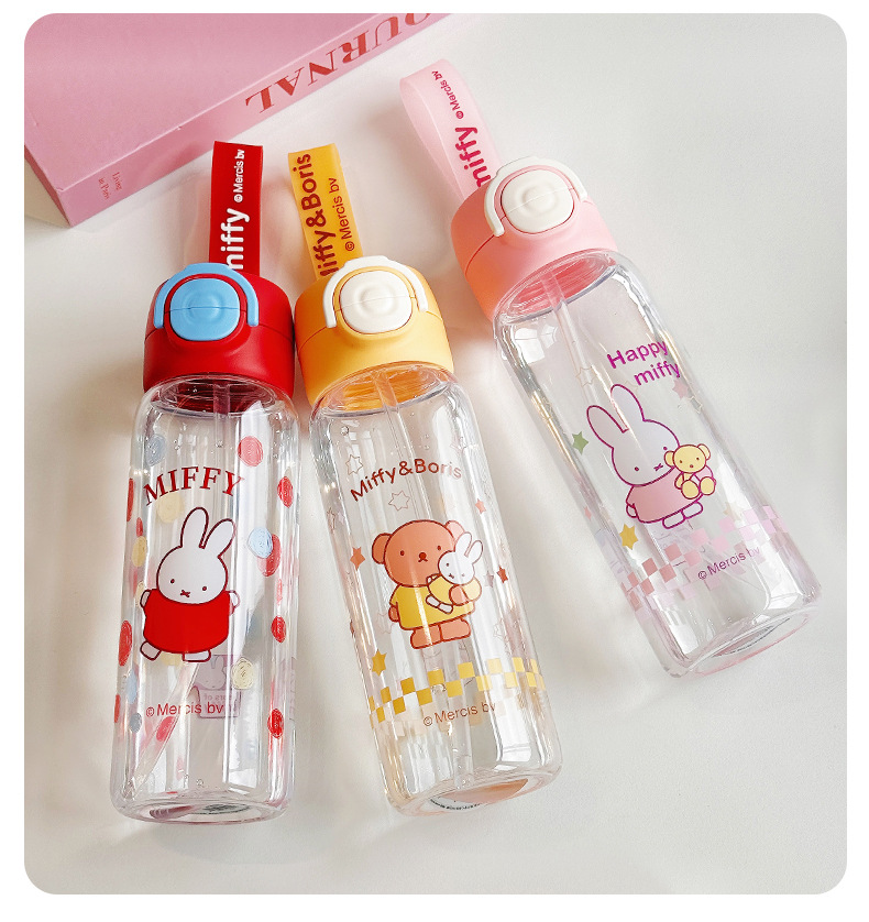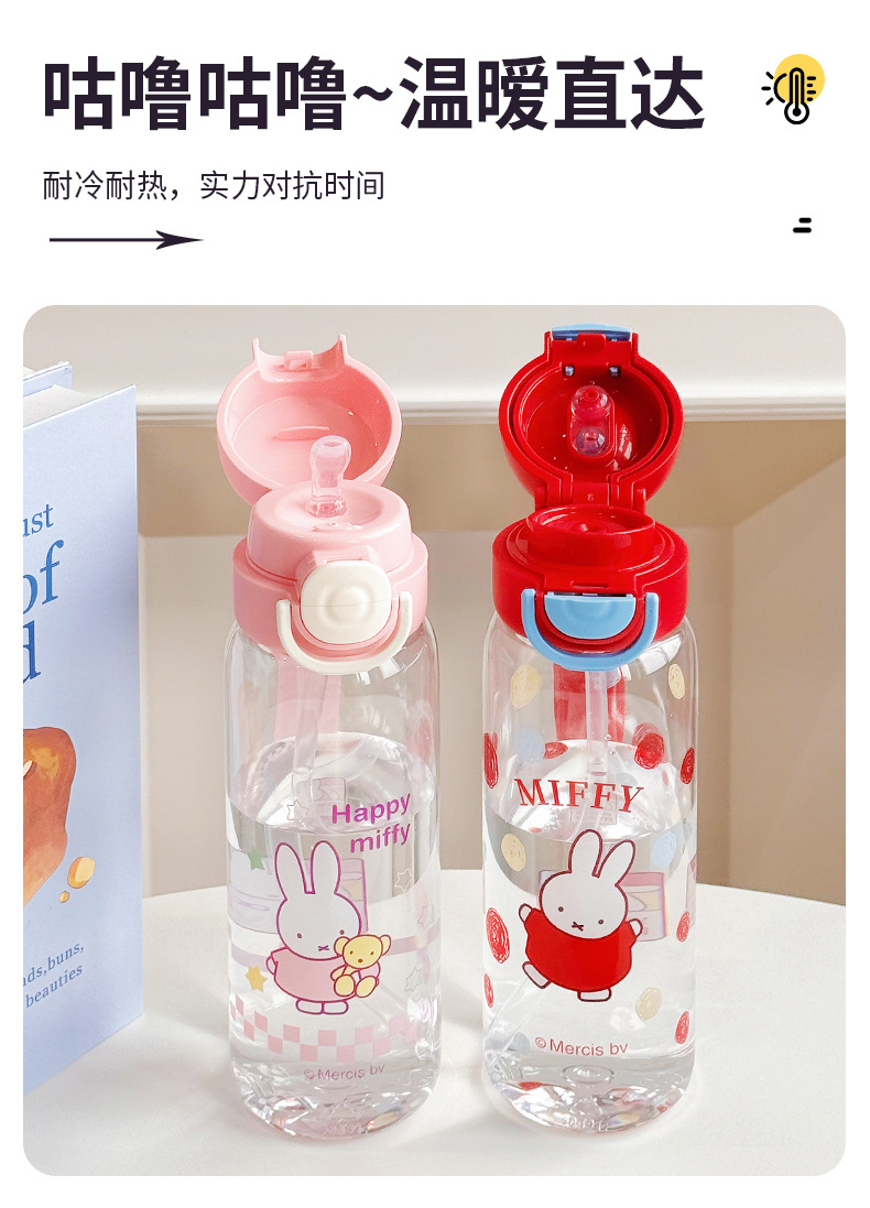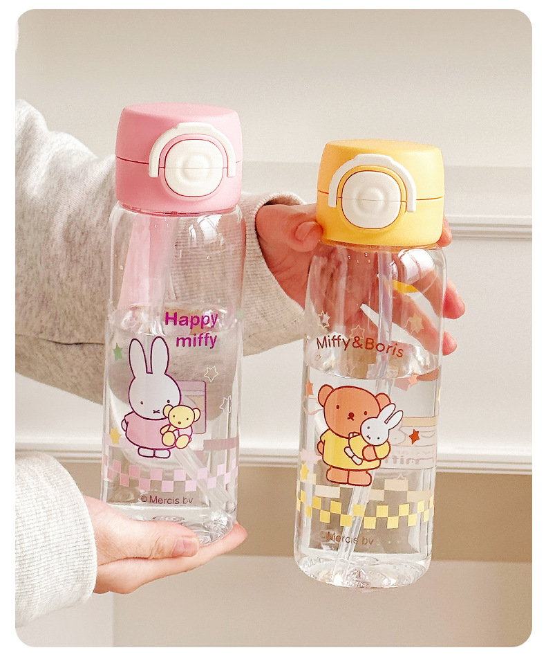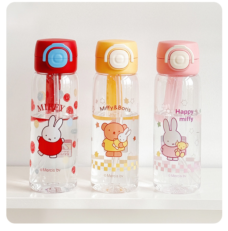 Miffy Cangkir Plastik Sedotan Kartun Model Baru Cangkir Air Portabel Tahan Suhu Tinggi Cangkir Air Mori Pelajar Musim Panas Grosir