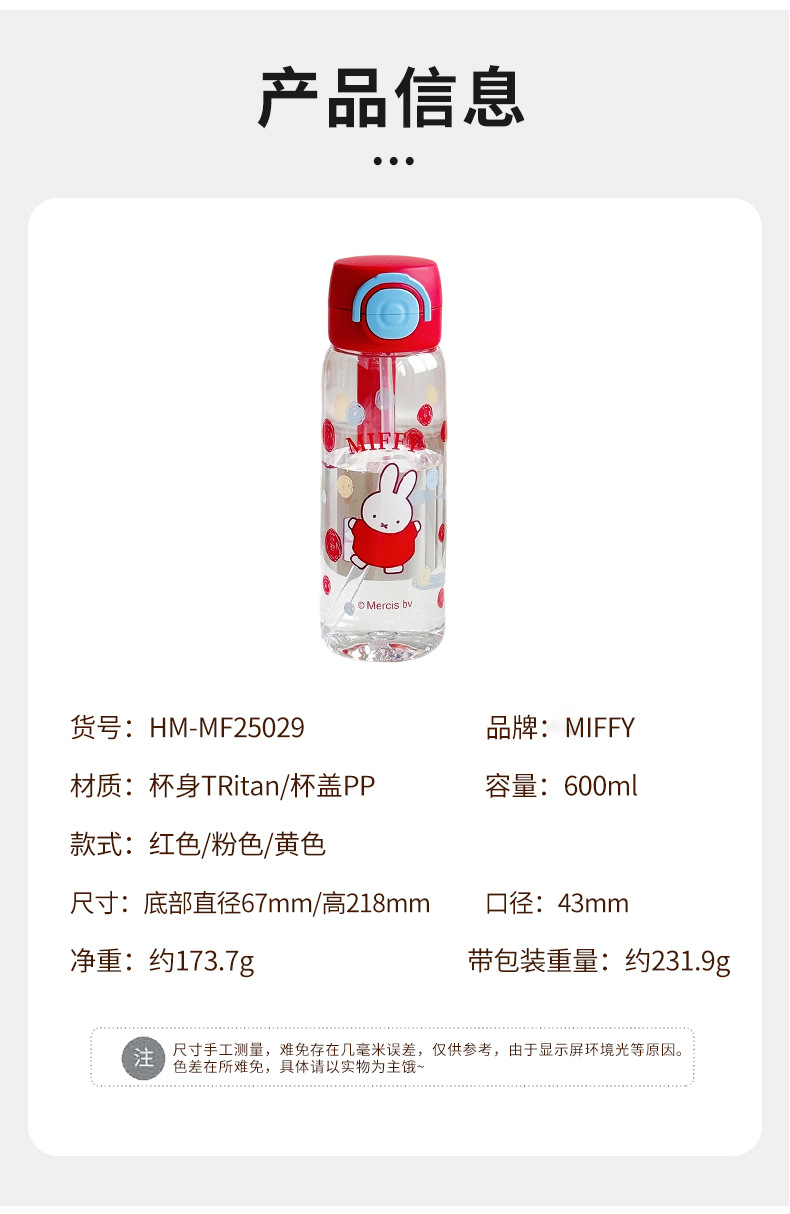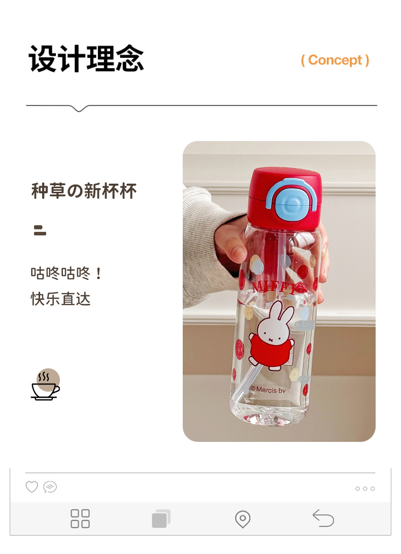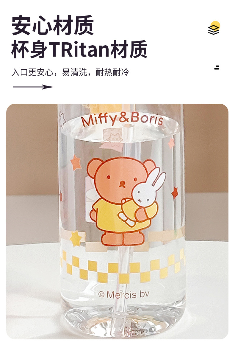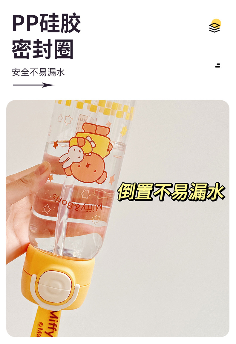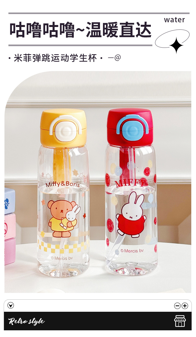 Miffy Cangkir Plastik Sedotan Kartun Model Baru Cangkir Air Portabel Tahan Suhu Tinggi Cangkir Air Mori Pelajar Musim Panas Grosir