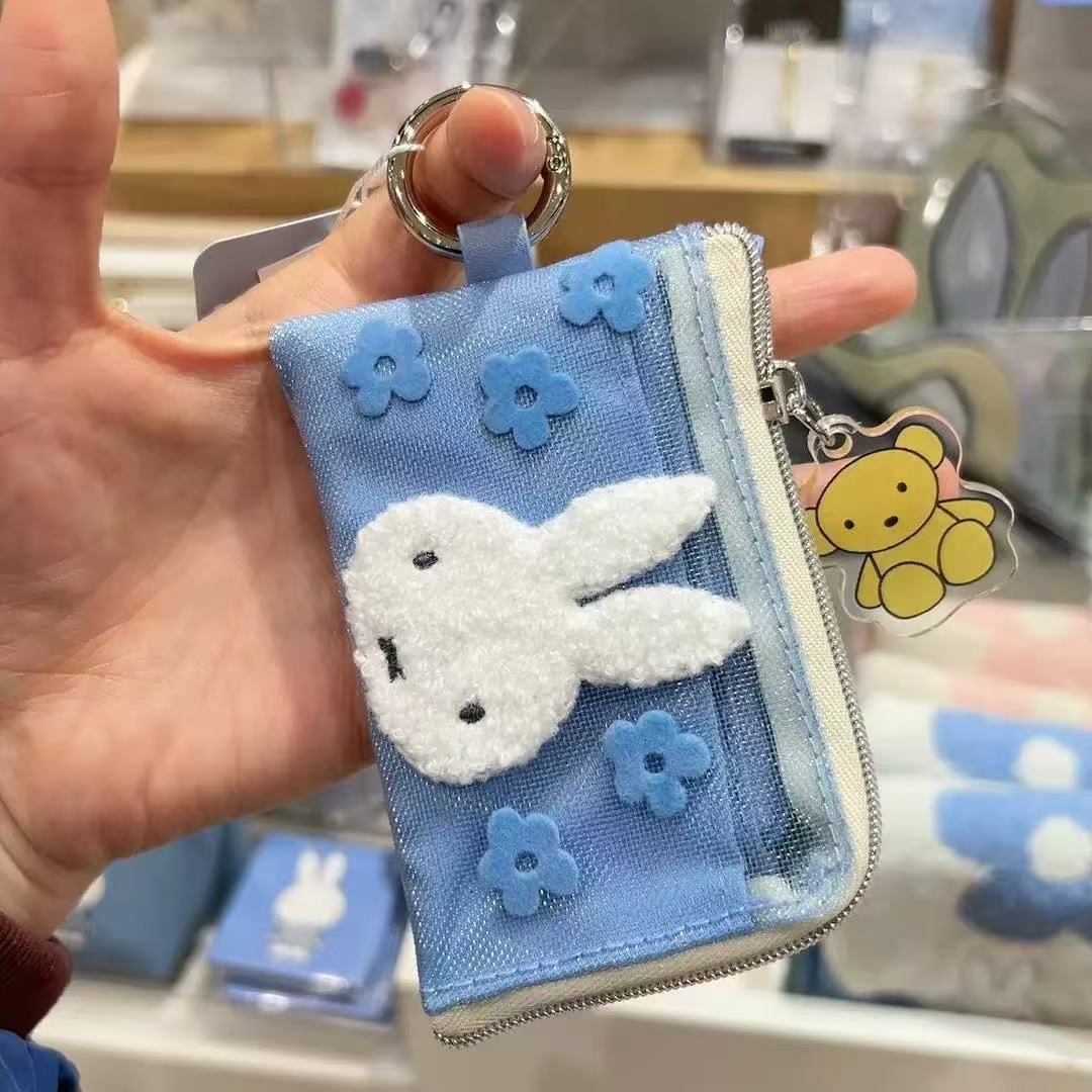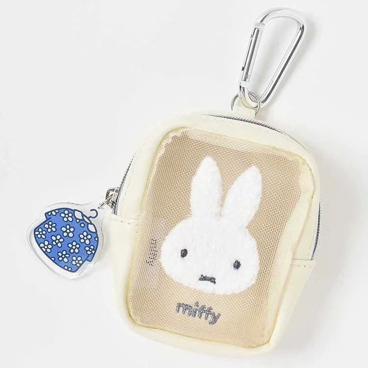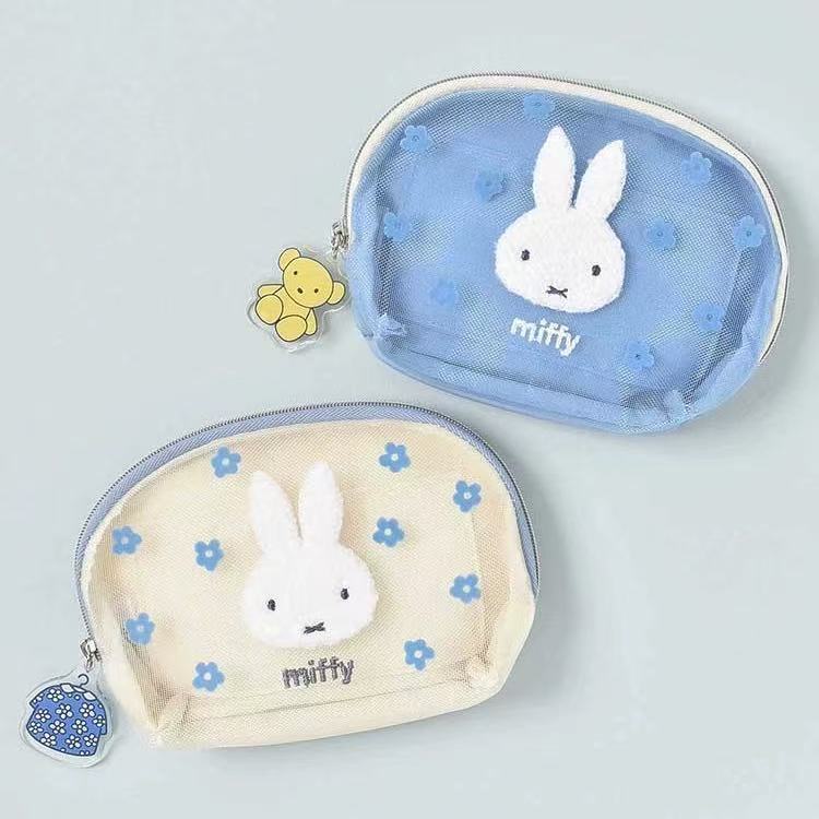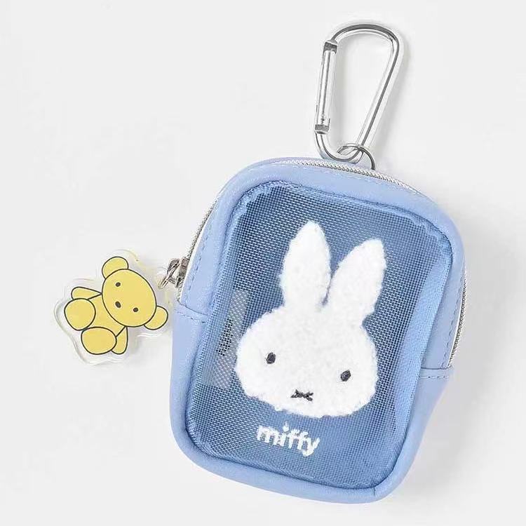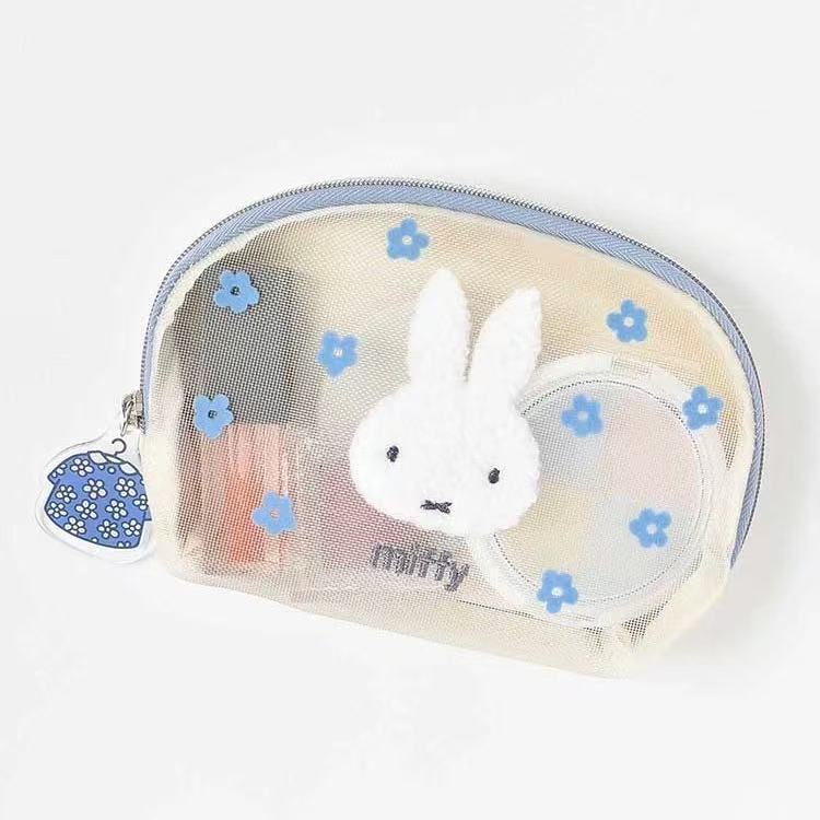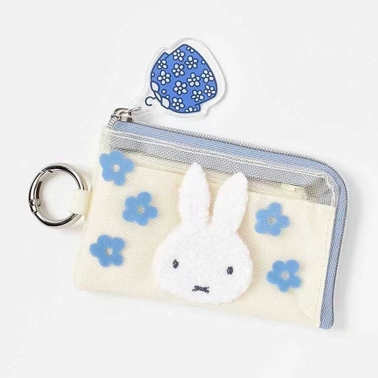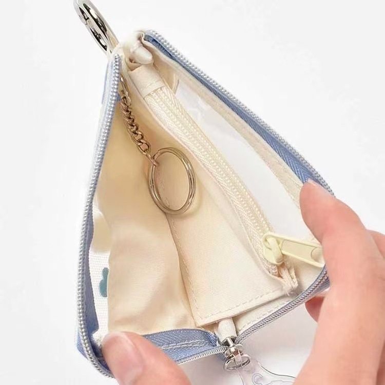 Tas rias bordir bergaya kartun Jepang, tas penyimpanan pembalut transparan berbahan jala, tempat kartu koin, tas gantungan kunci.