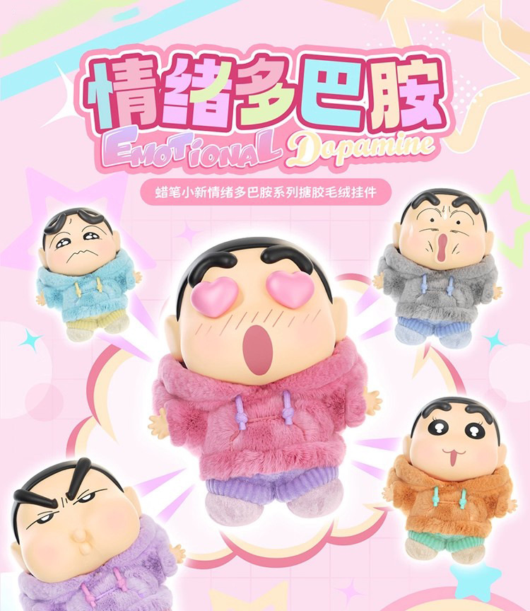 正版蜡笔小新情绪多巴胺搪胶毛绒挂件盲盒潮玩手办可爱公仔摆件批