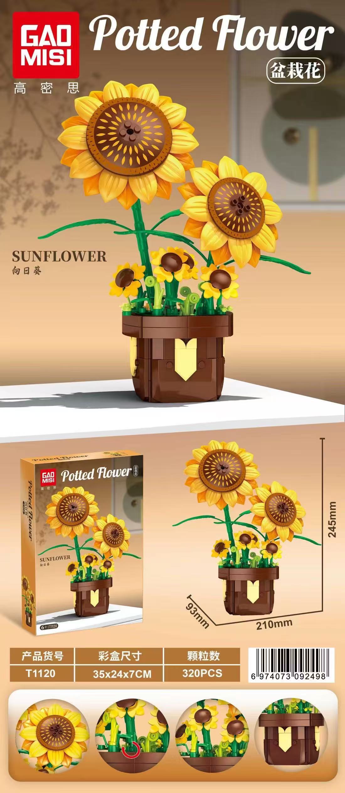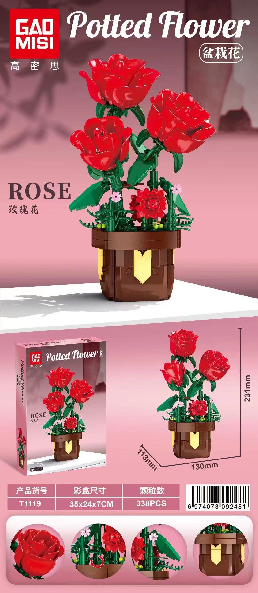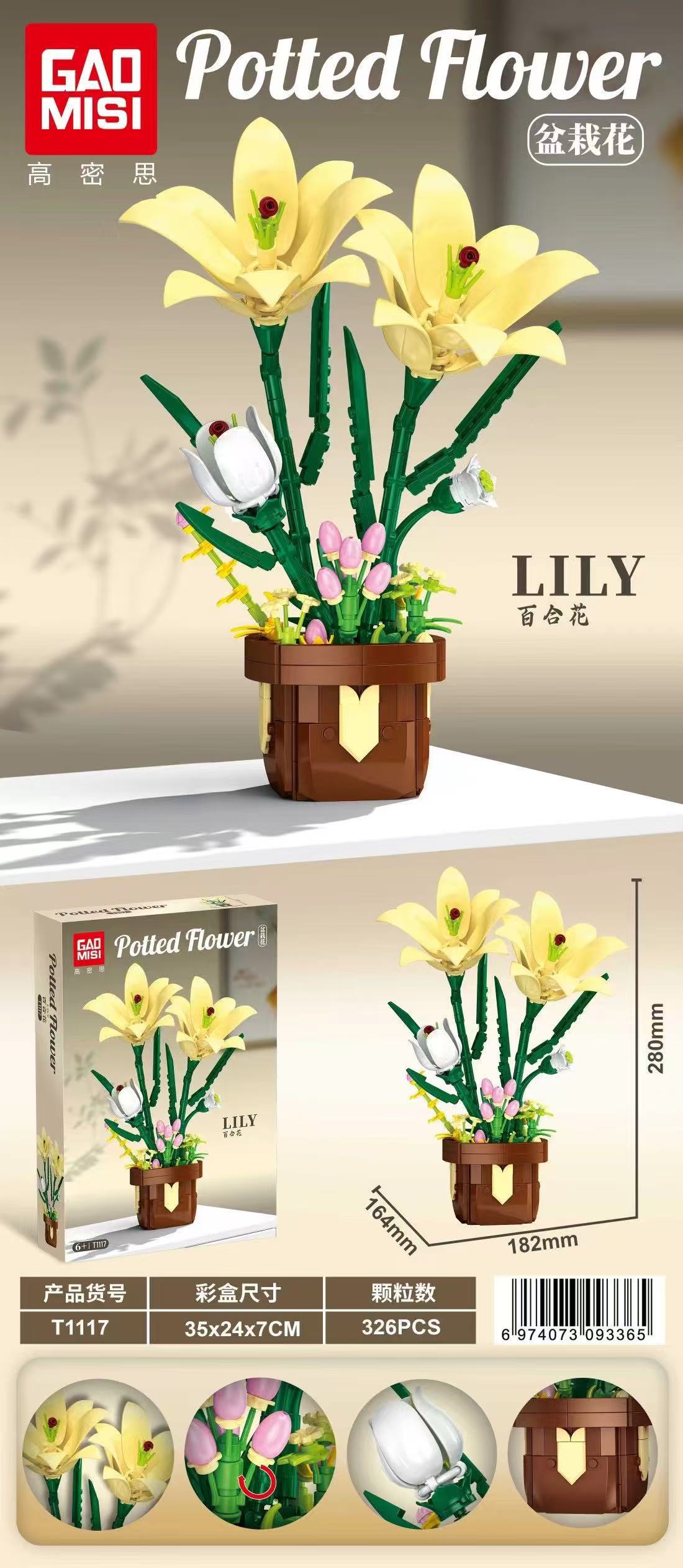 跨境高密思T1117-20盆栽花系列兼容乐高积木拼装玩具女孩生日礼物