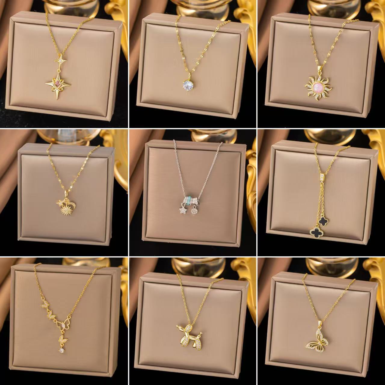 【新款3】跨境热销微镶锆石太阳星月亮花朵吊坠项链女百搭锁骨链