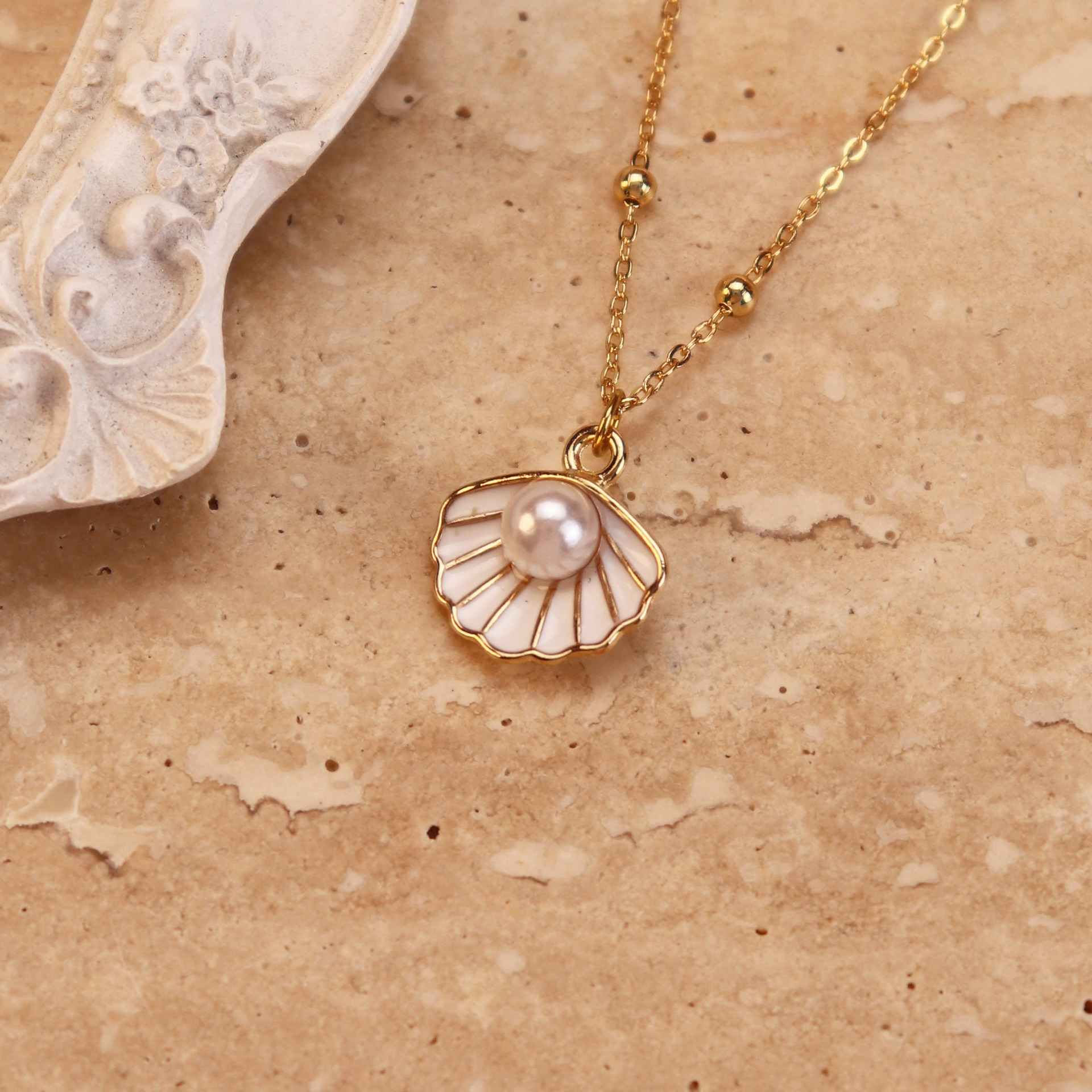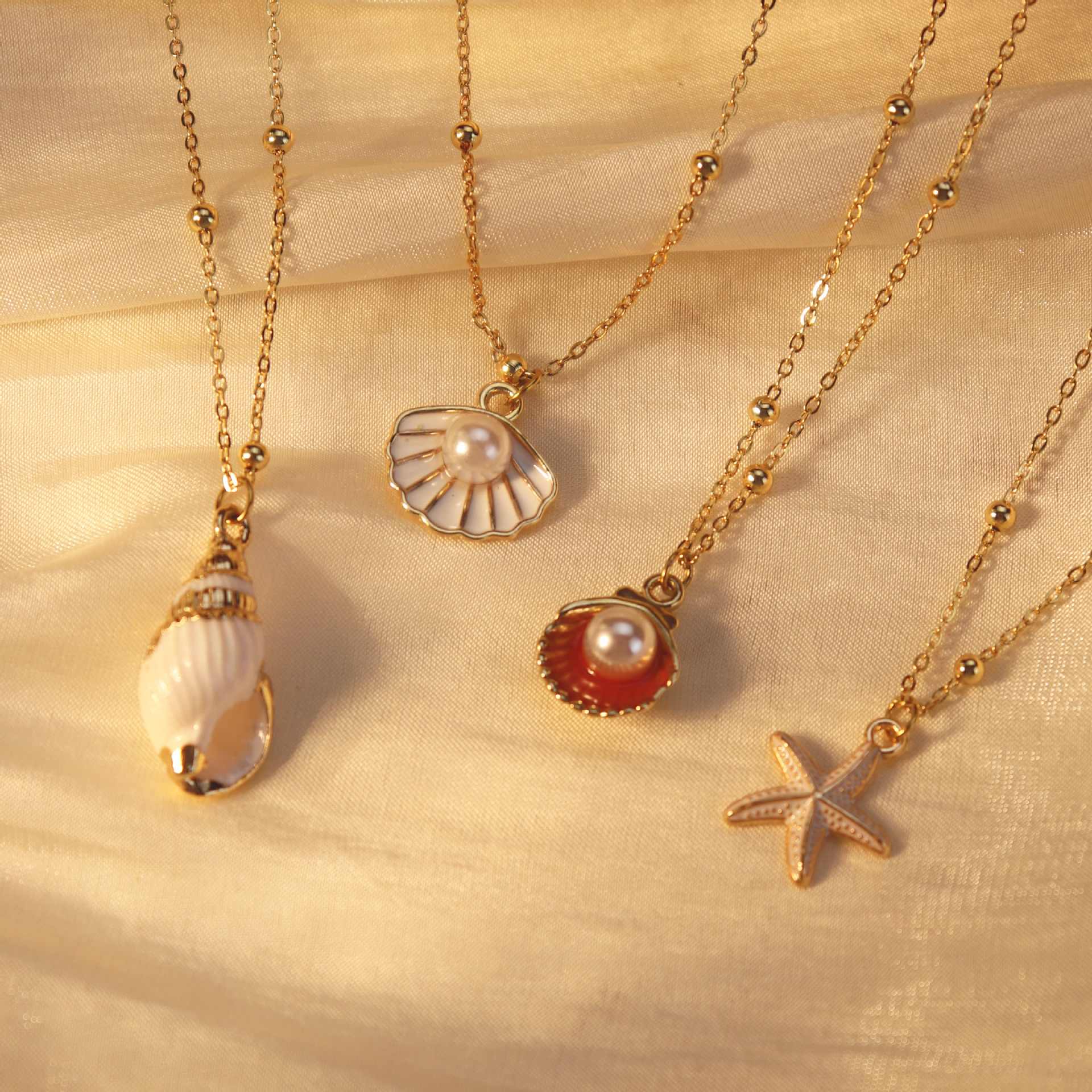 波西米亚欧美不掉色钛钢珍珠贝壳海螺项链女款海洋系列沙滩海螺壳