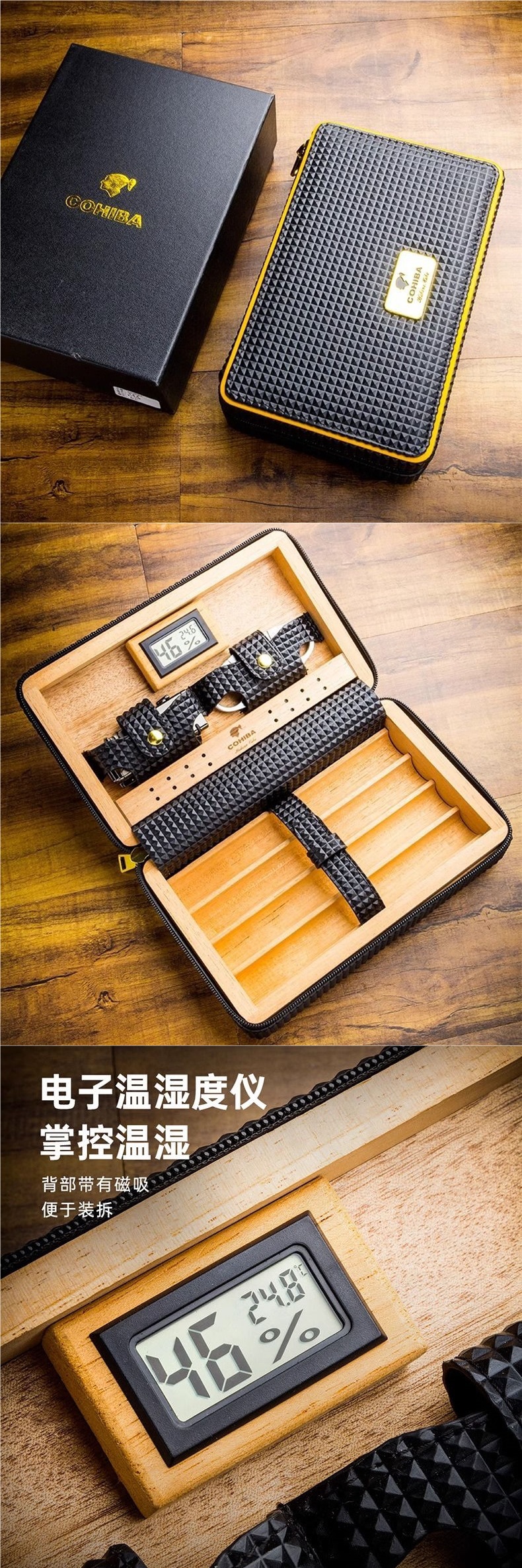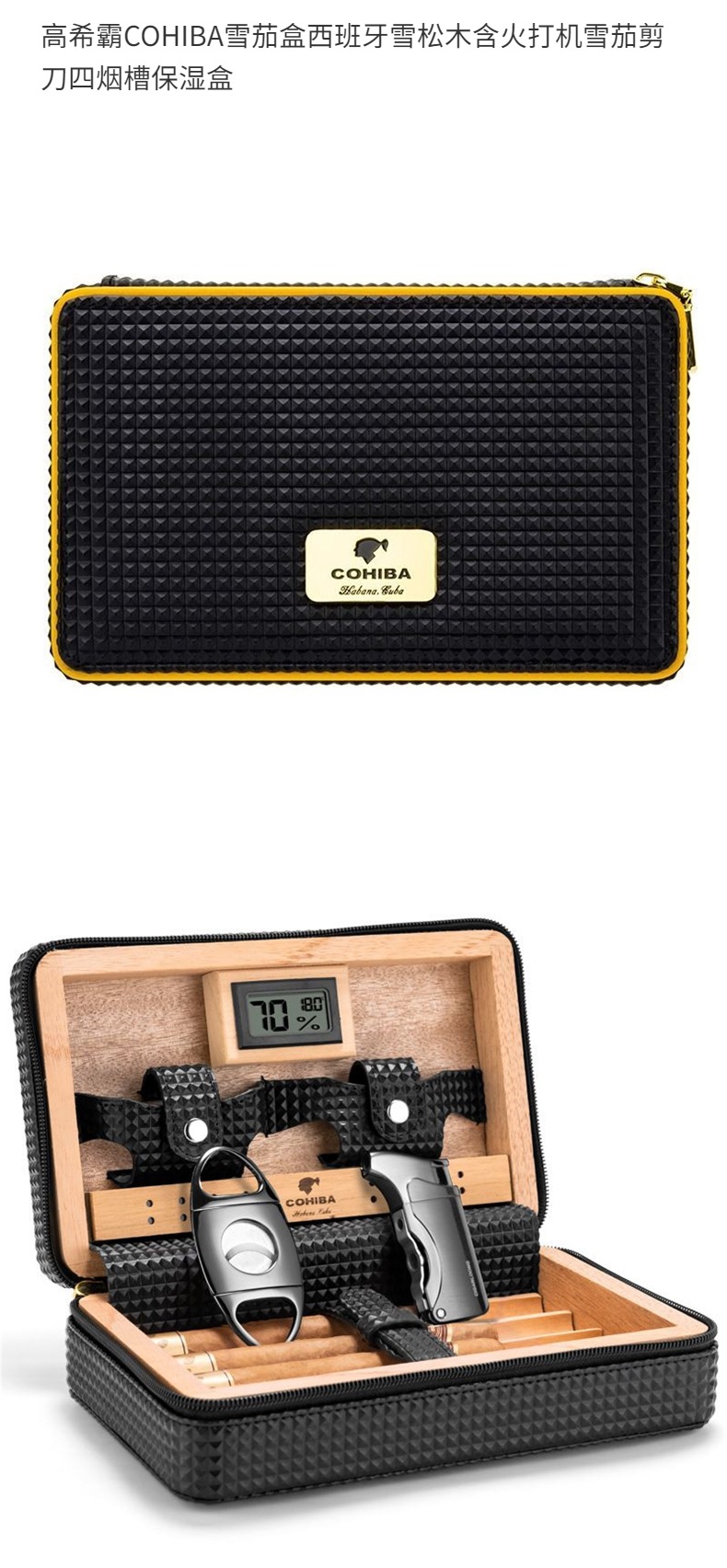 高希霸COHIBA雪茄盒西班牙雪松木含火打机雪茄剪刀四烟槽保湿盒