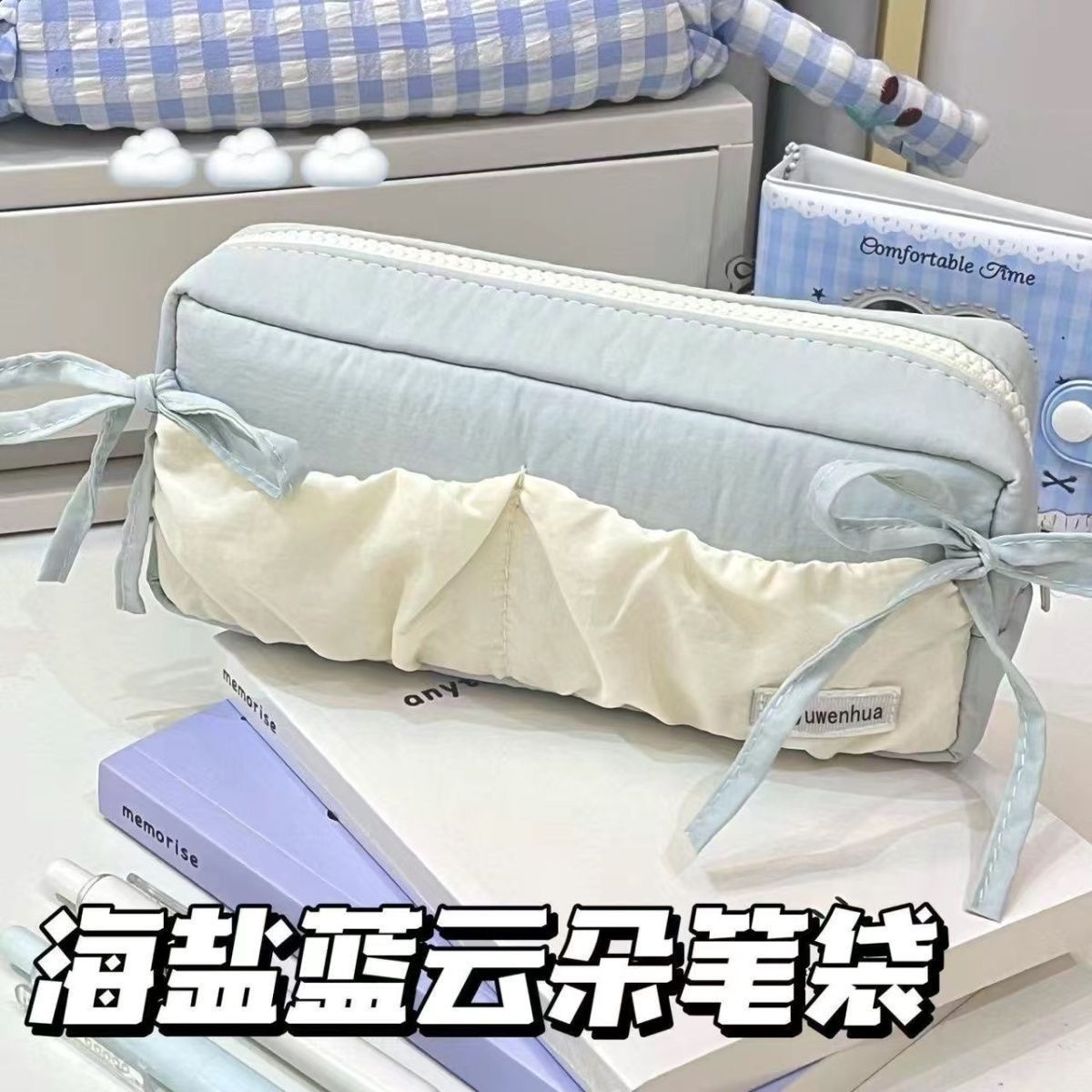 云朵海盐吐司蝴蝶结笔袋ins风高颜值大容量少女心学生铅笔收纳袋