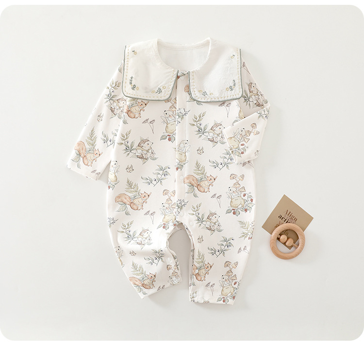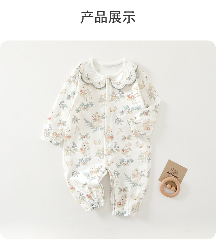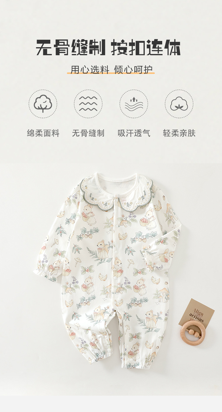 婴儿衣服长袖夏季婴幼儿连体衣纯棉宝宝爬服无骨哈衣空调服透气