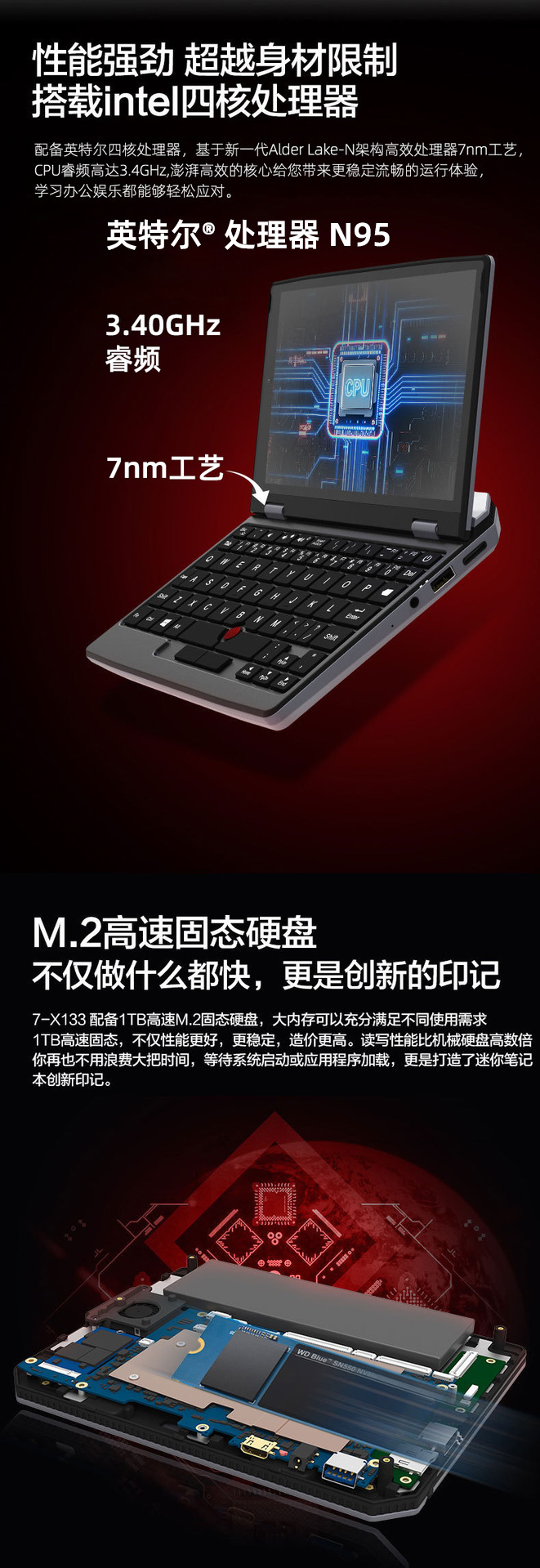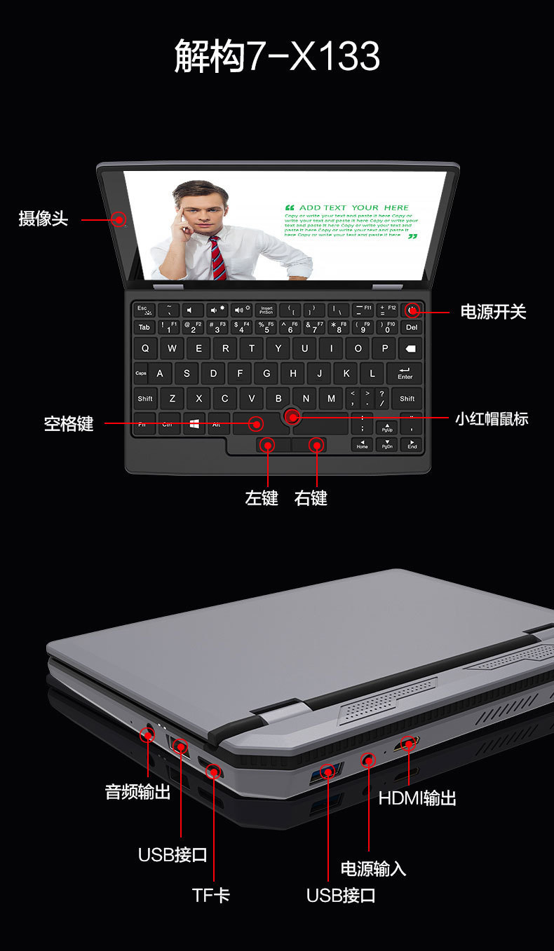 Penjualan langsung pabrik laptop genggam layar sentuh logam 7-inci N95 untuk teknik, kantor portabel, grosir lintas batas