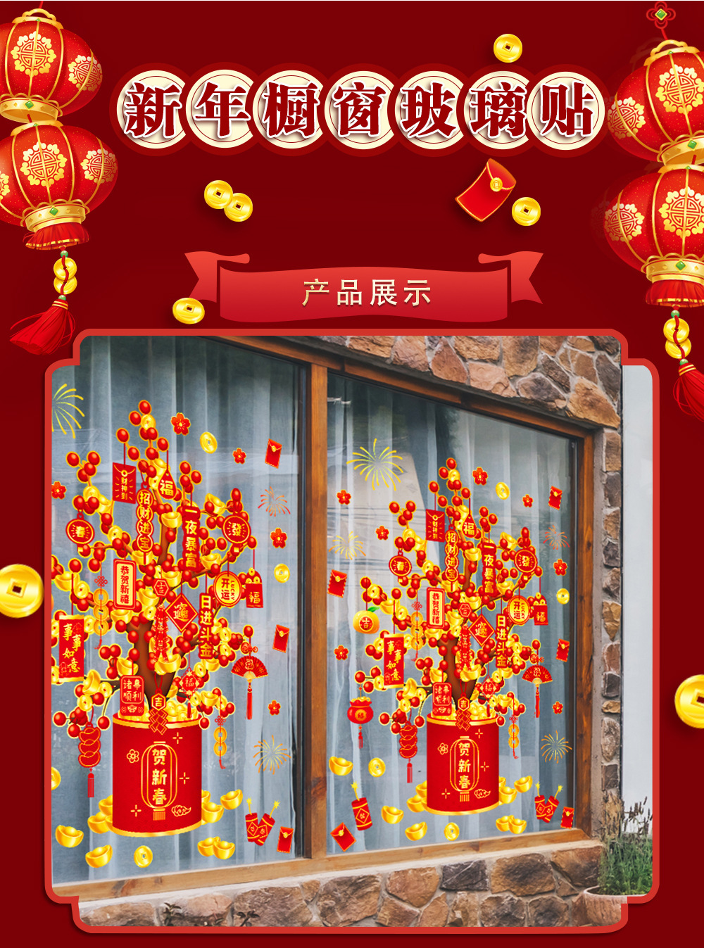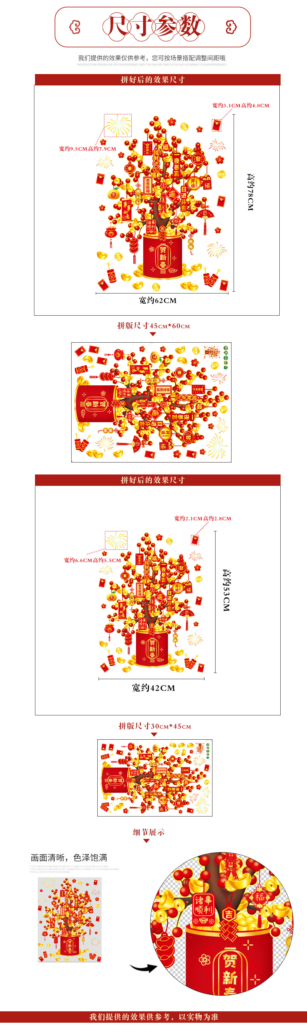 Stiker Pohon Keberuntungan Dekorasi Tahun Baru 2026 Tahun Kuda Stiker Jendela Stiker Statis Festival Musim Semi Tahun Baru Stiker Kaca Pintu Toko