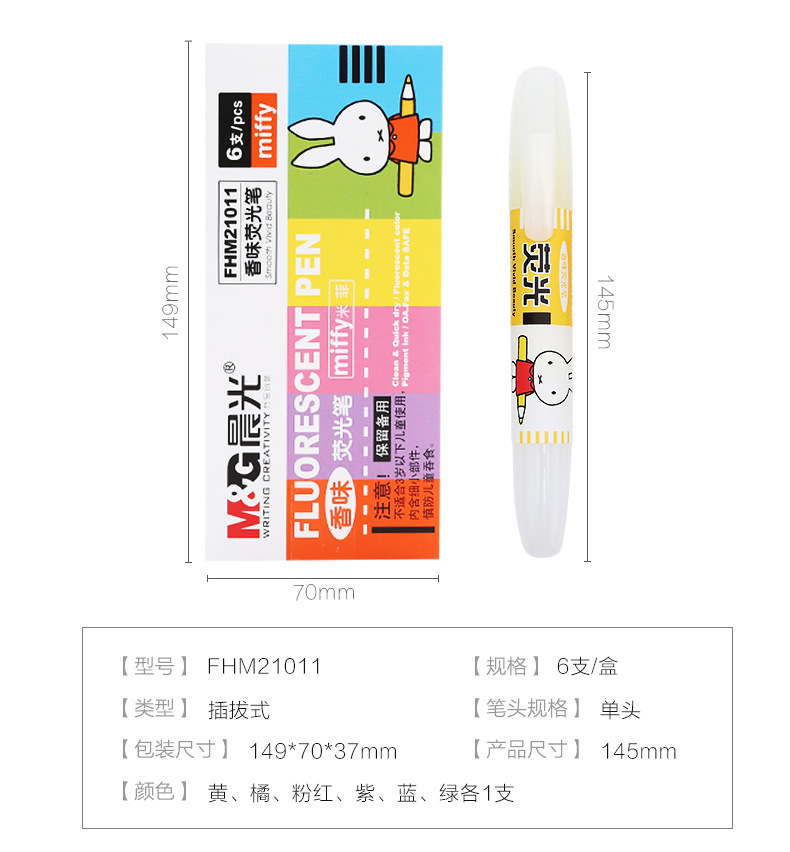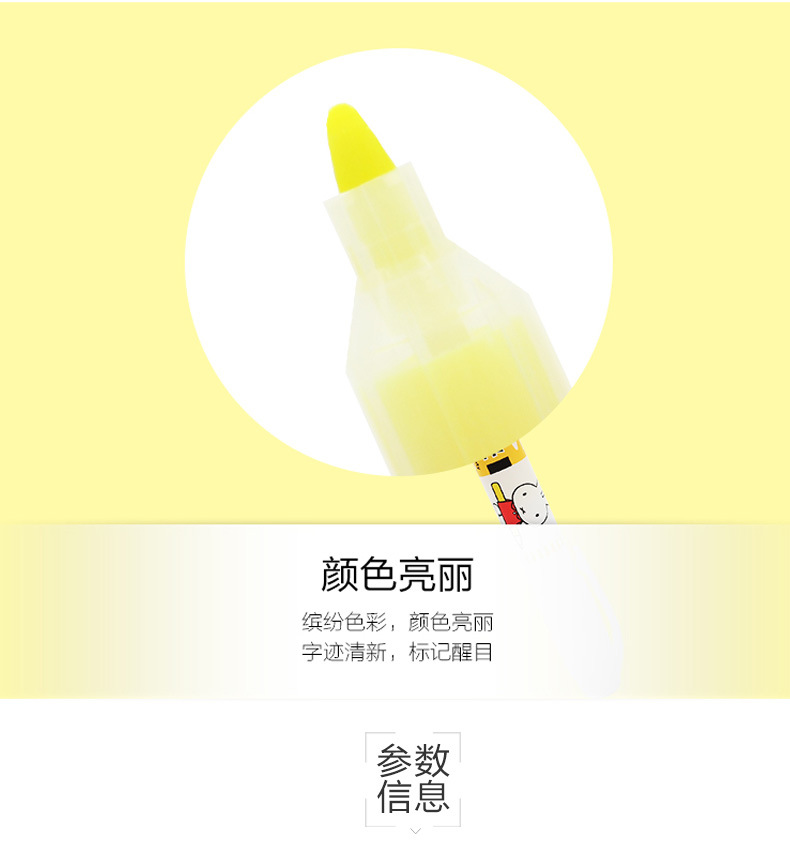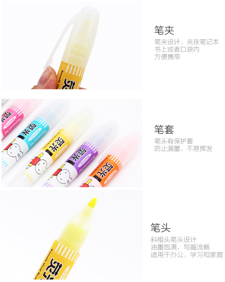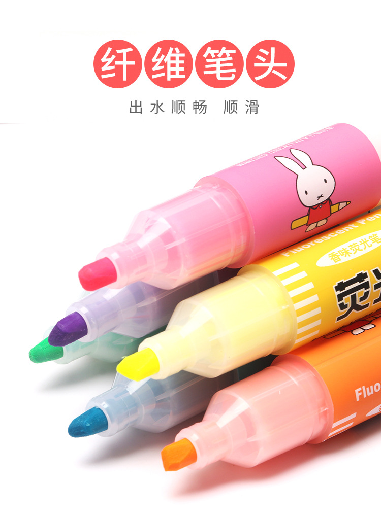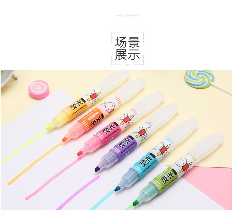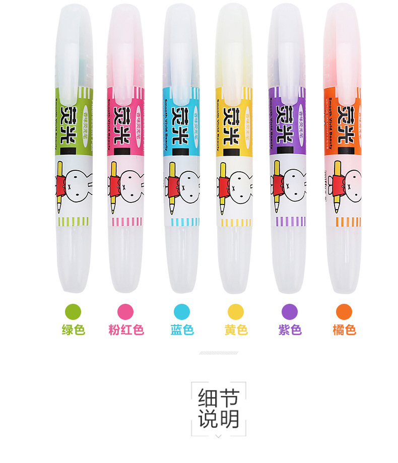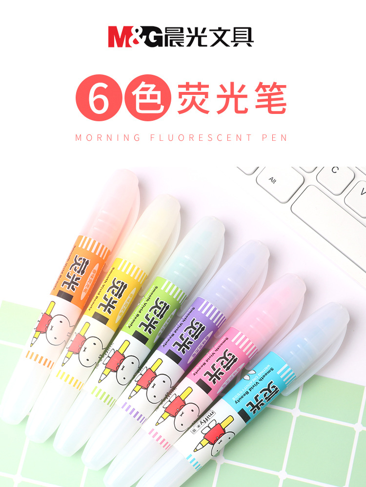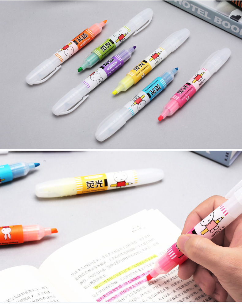 Spidol highlighter merek MF5301 karakter kartun Miffy 6 warna, spidol pelajar, spidol warna-warni, ulasan spidol highlighter