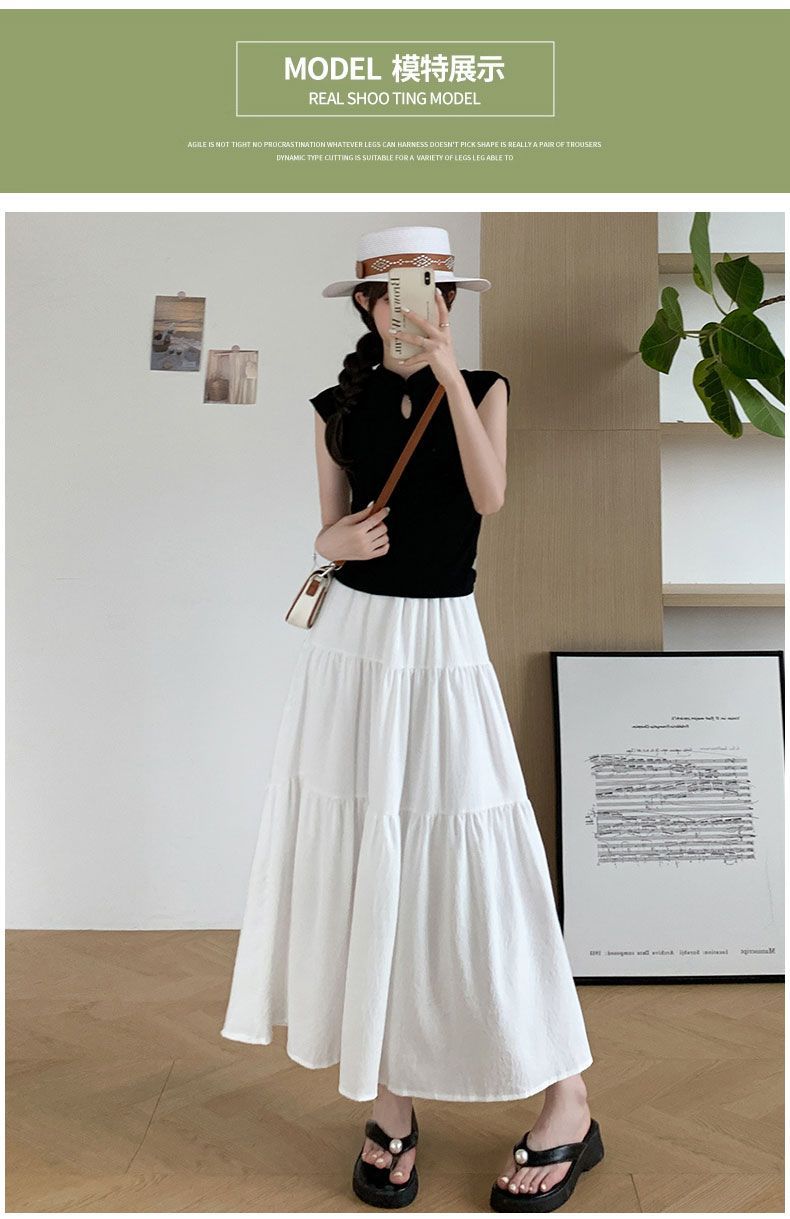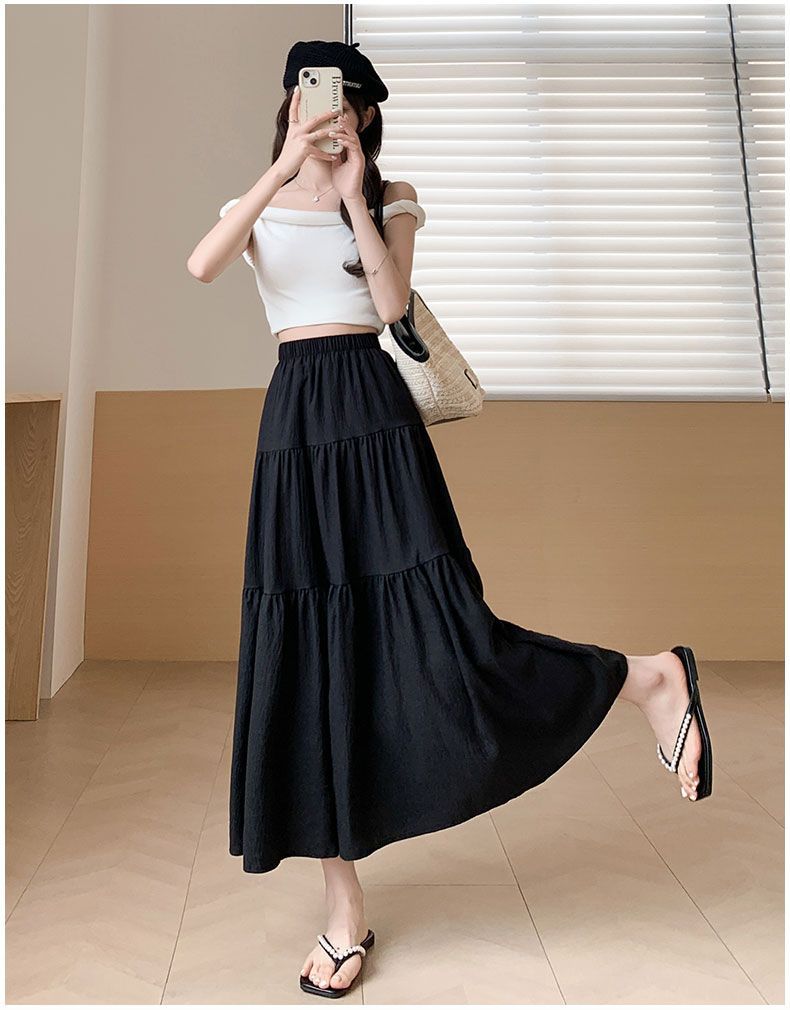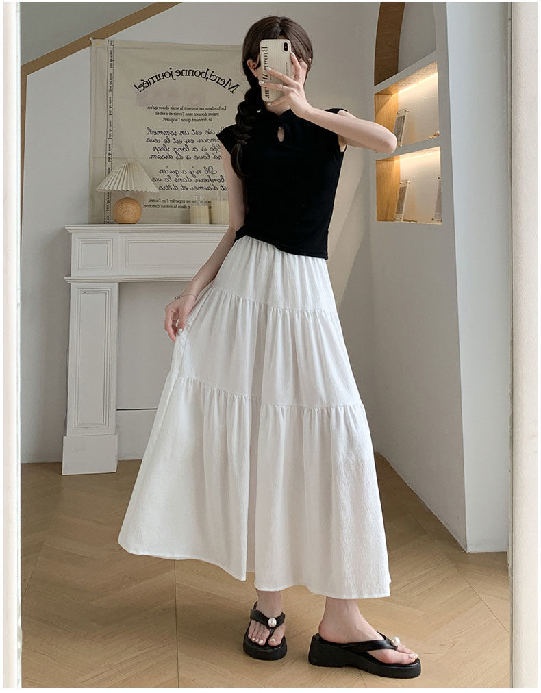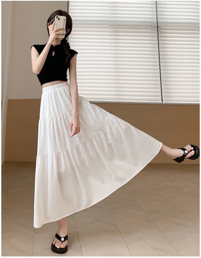 Rok Setengah Badan Huruf A Warna Putih Gaya Lembut Rok Kue Gaya Jatuh Terlihat Langsing Pinggang Tinggi Model Baru 2025 Musim Semi Musim Panas Wanita Rok Panjang