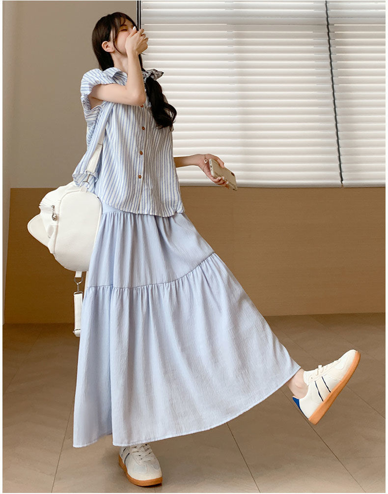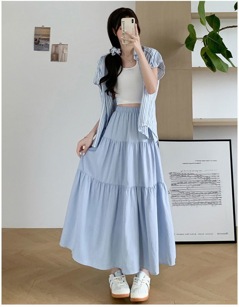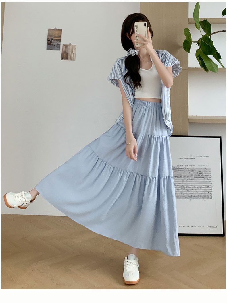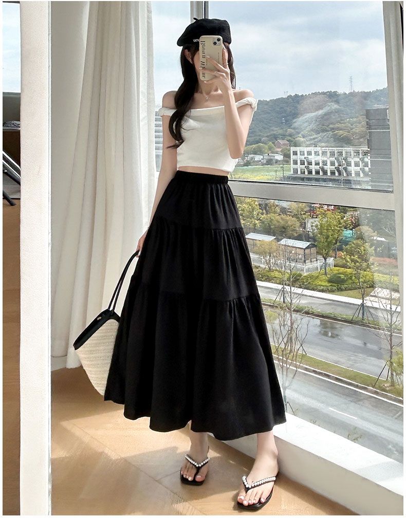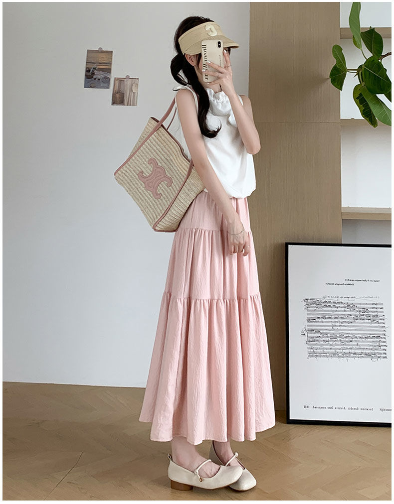 Rok Setengah Badan Huruf A Warna Putih Gaya Lembut Rok Kue Gaya Jatuh Terlihat Langsing Pinggang Tinggi Model Baru 2025 Musim Semi Musim Panas Wanita Rok Panjang