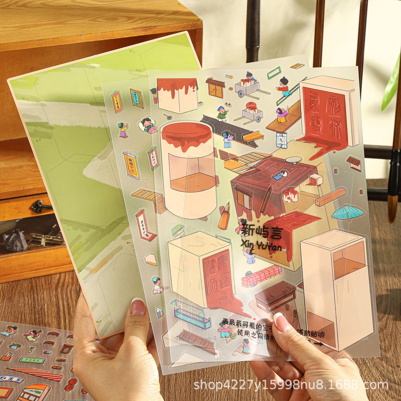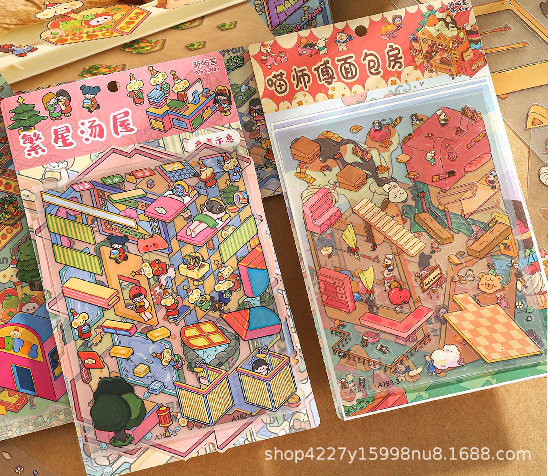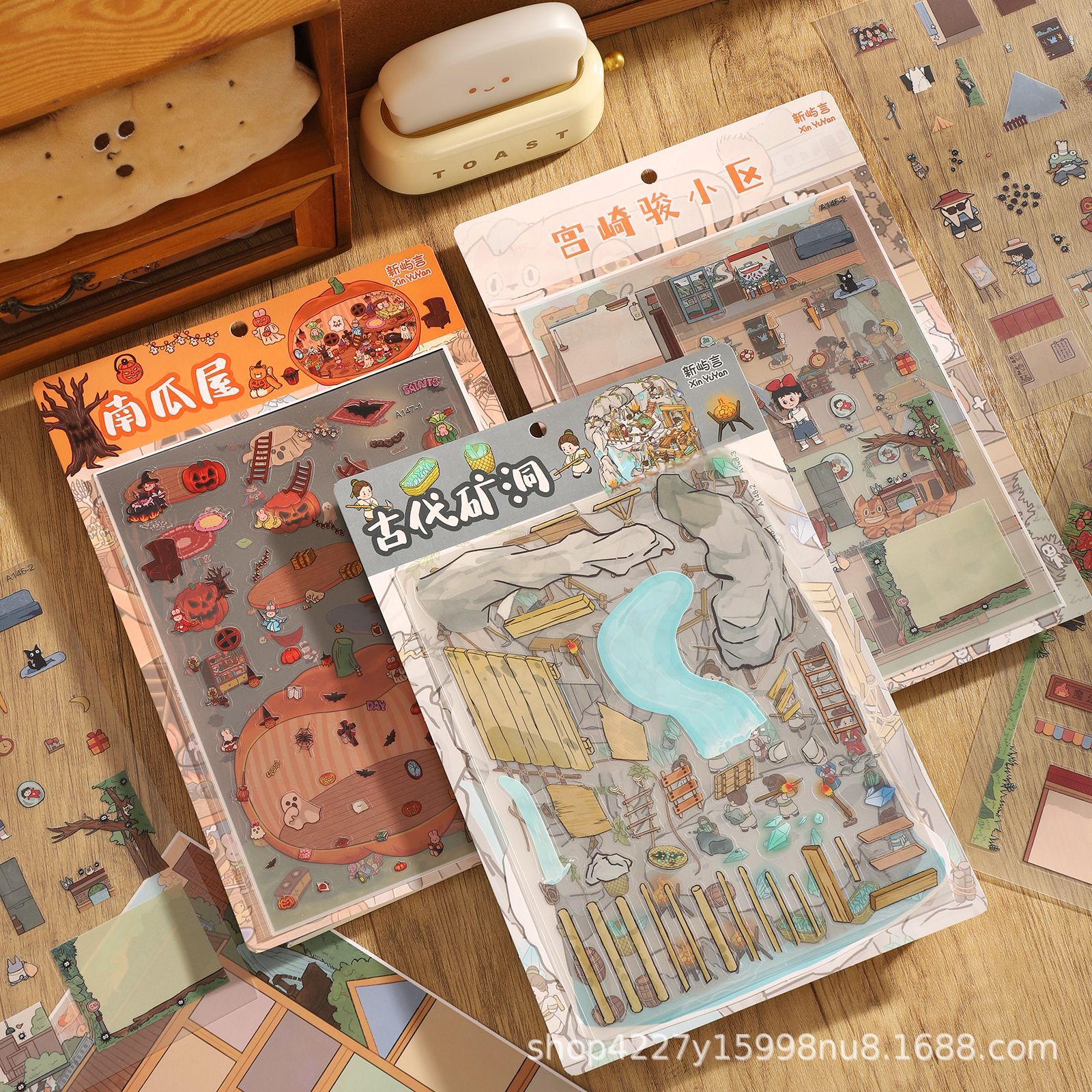 Stiker Adegan Horor Mikro Xinyuyan 18.0 Versi Ekstra Besar Stiker Adegan Rumah 3D Kaku DIY