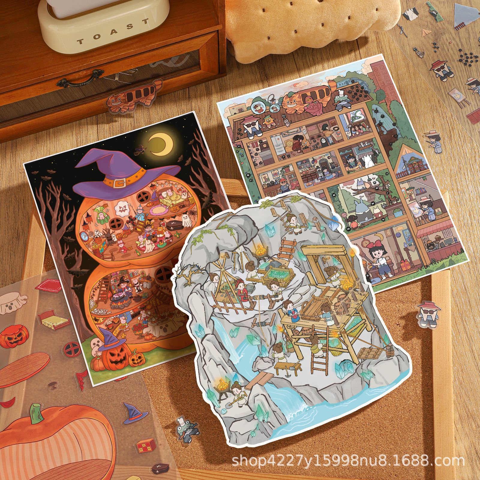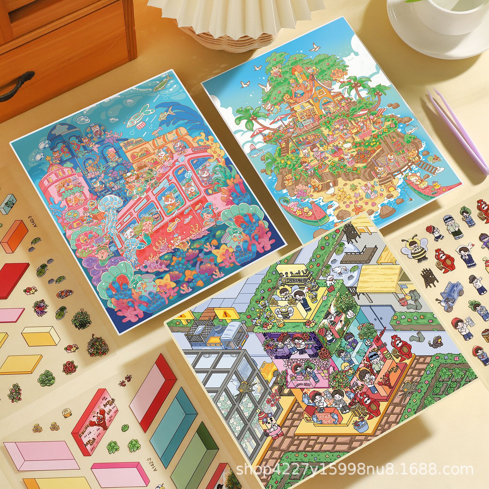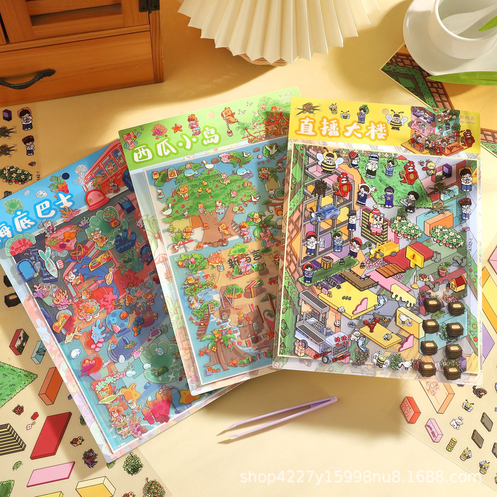 Stiker Adegan Horor Mikro Xinyuyan 18.0 Versi Ekstra Besar Stiker Adegan Rumah 3D Kaku DIY