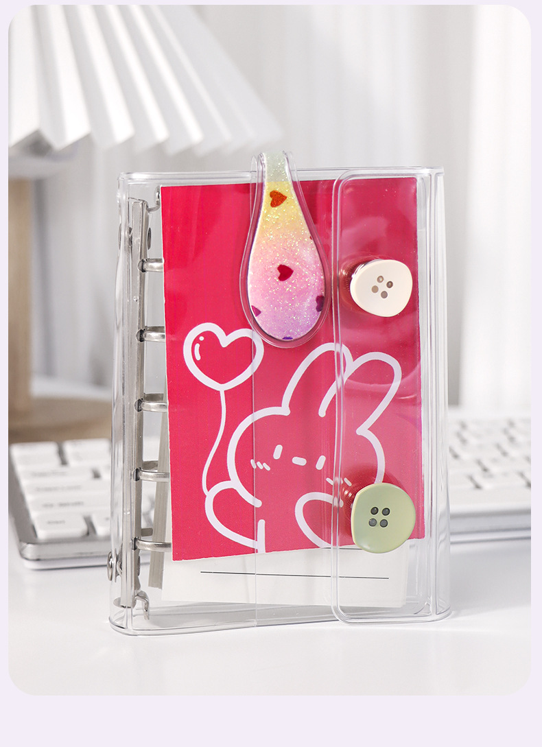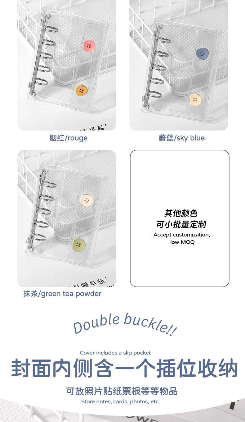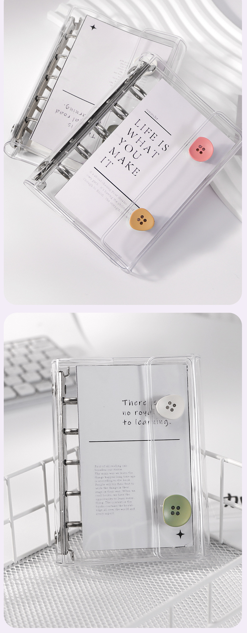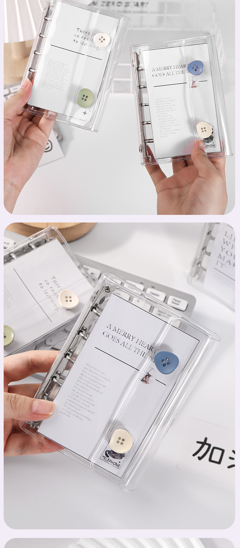 Buku Pegangan Buku Pegangan Portabel M5 Buku Pegangan Tangan Pvc Transparan Kancing Ganda Casing Lembaran Buku Pegangan Kartu Logam 5 Lubang