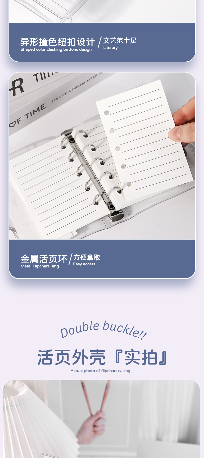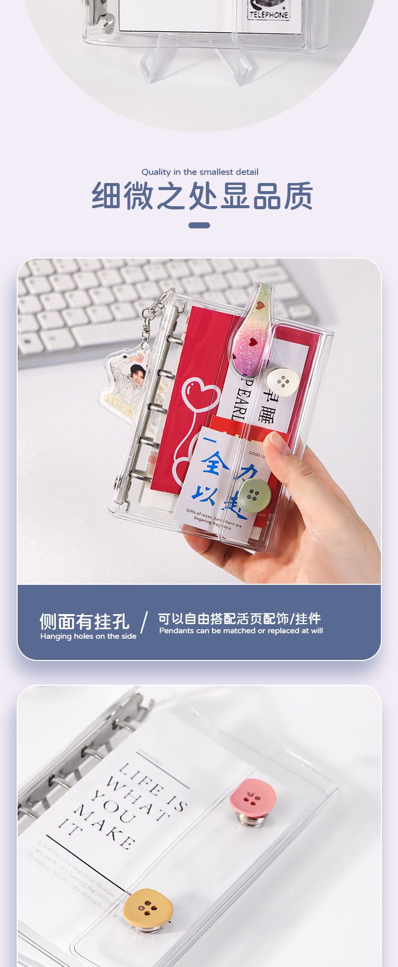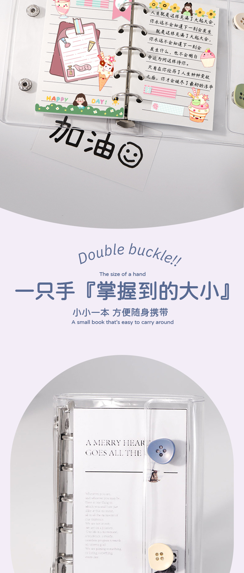 Buku Pegangan Buku Pegangan Portabel M5 Buku Pegangan Tangan Pvc Transparan Kancing Ganda Casing Lembaran Buku Pegangan Kartu Logam 5 Lubang